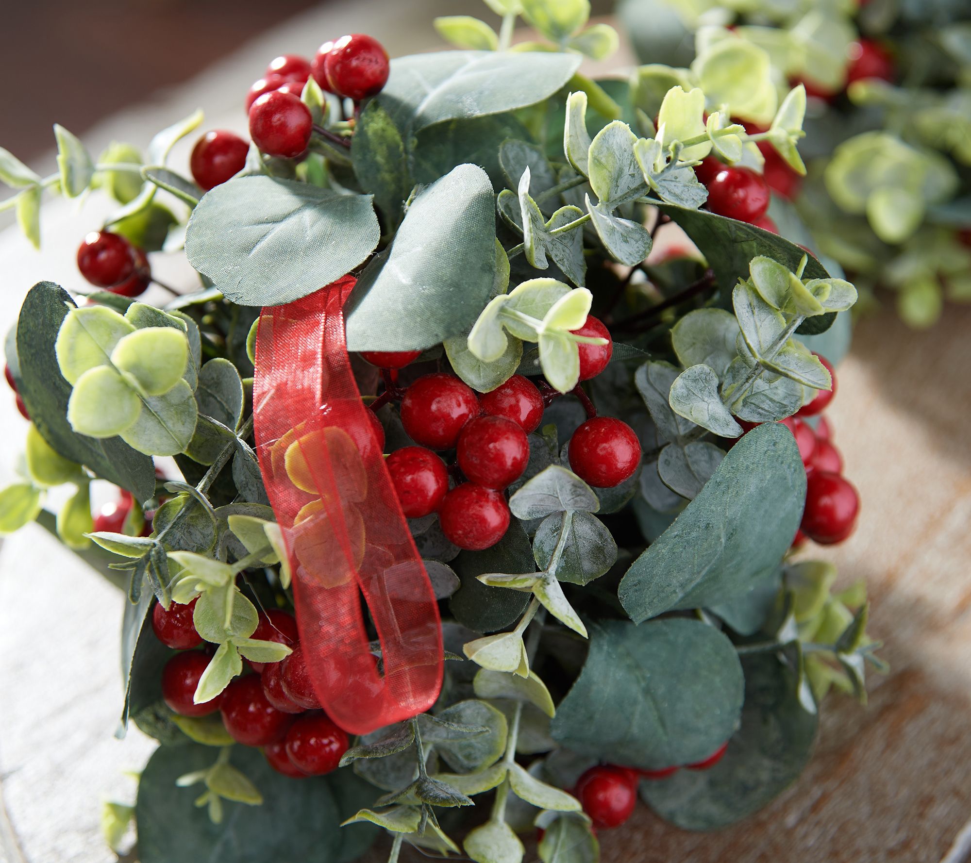 • Lifelike eucalyptus leaves and stems with red berry clusters