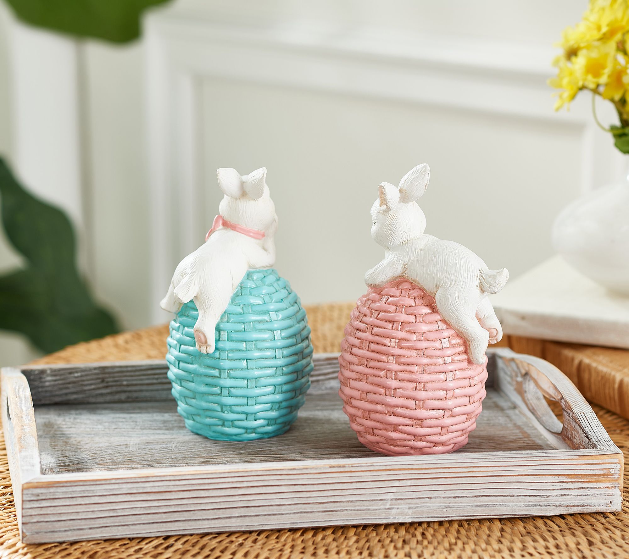 Bet these bunnies are resting up for the big day ahead! Accent any space with this adorable duo of daydreaming rabbits and add an air of springtime to your abode. From the Valerie Parr Hill Collection.