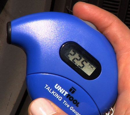 Under pressure. Take the hassle out of car maintenance with this digital talking tire gauge key chain. Its voice announces the pressure reading and also displays the measurement on a LCD screen. From Unit Tool.