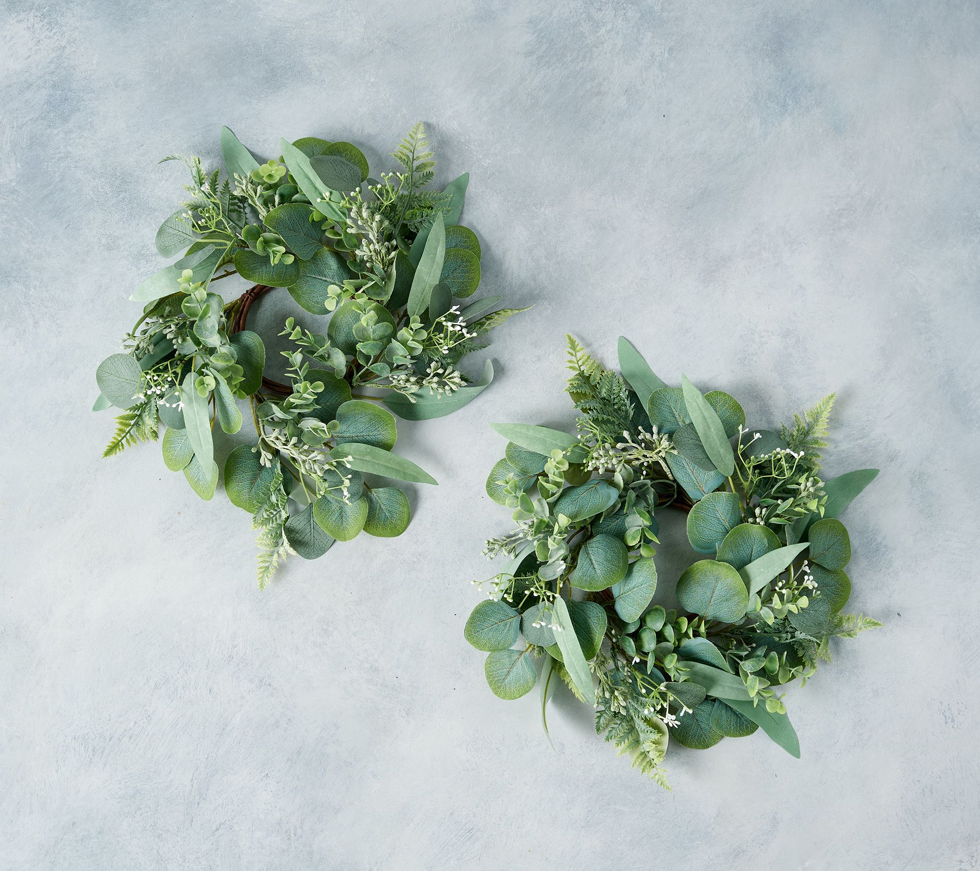 Introduce fuss-free greenery to any sparse spot inside your home with these versatile eucalyptus and berry candle rings. From the Valerie Parr Hill Collection.