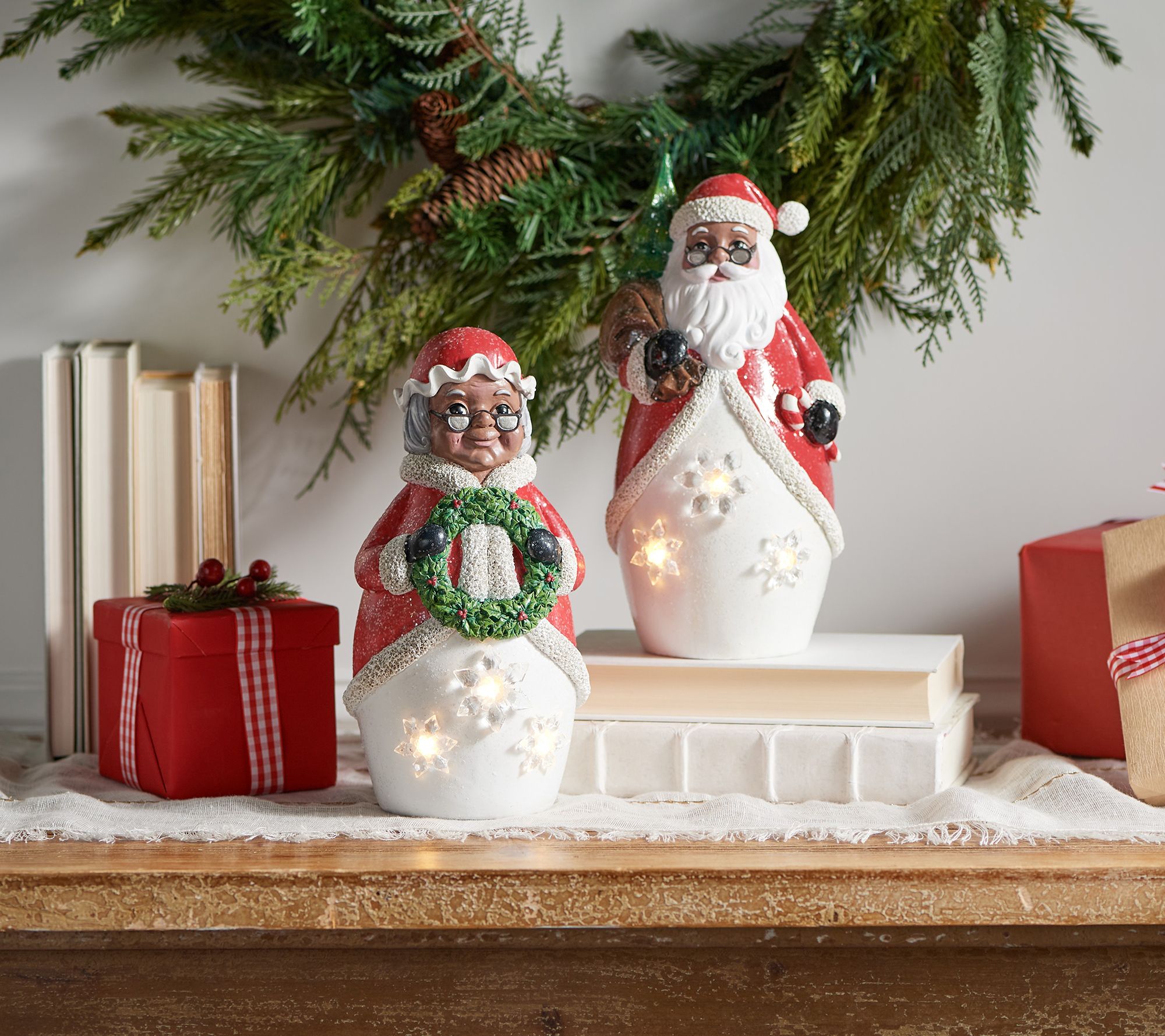 Set of 2 Illuminated Santa and Mrs. Claus Figures by Valerie