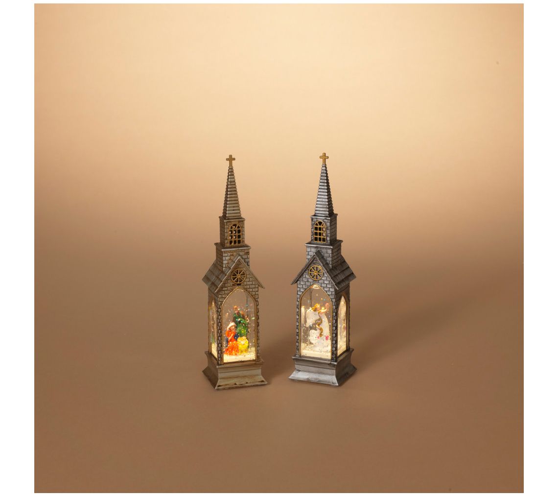 Set of 2 Lighted Holiday Water Globe Church byerson Co