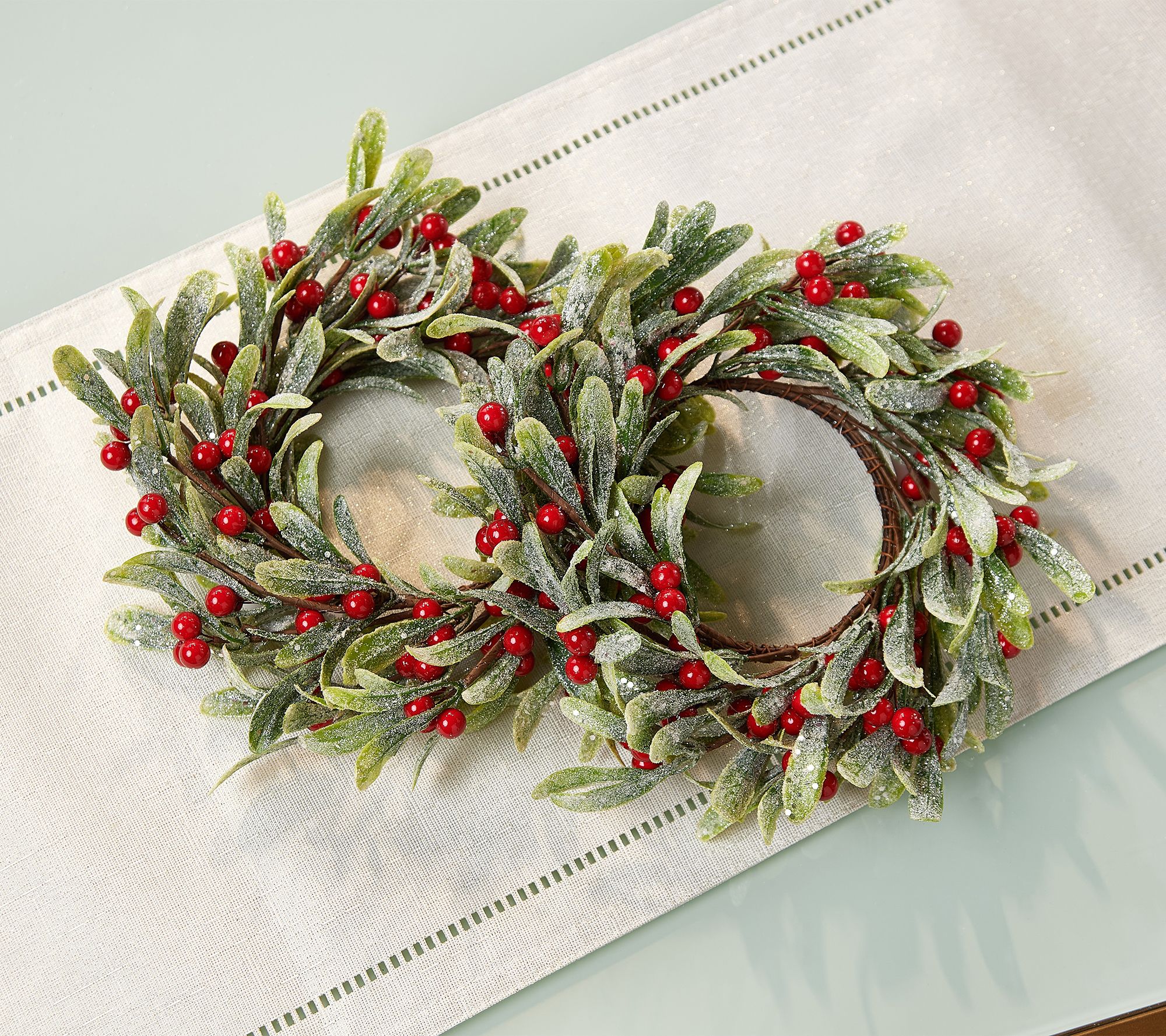 Set of 2 Mistletoe Candle Rings by Valerie