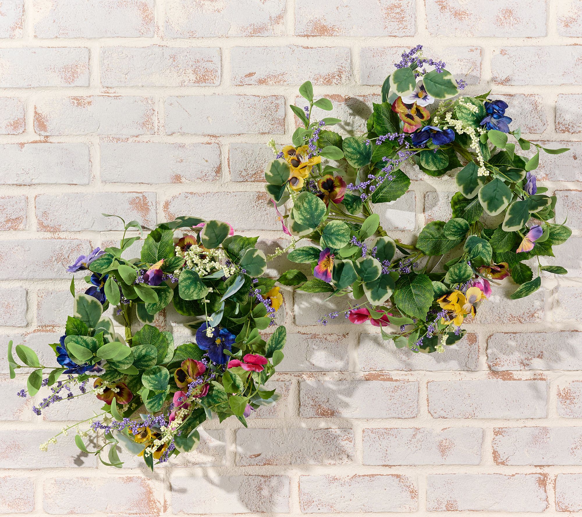 The first true sign of spring, pansies are a harbinger of warmer days ahead! But don't wait for Mother Nature -- pepper your personal space with these lifelike mini wreaths filled with happy-faced, brightly colored blooms now -- or any time of year! From the Valerie Parr Hill Collection.