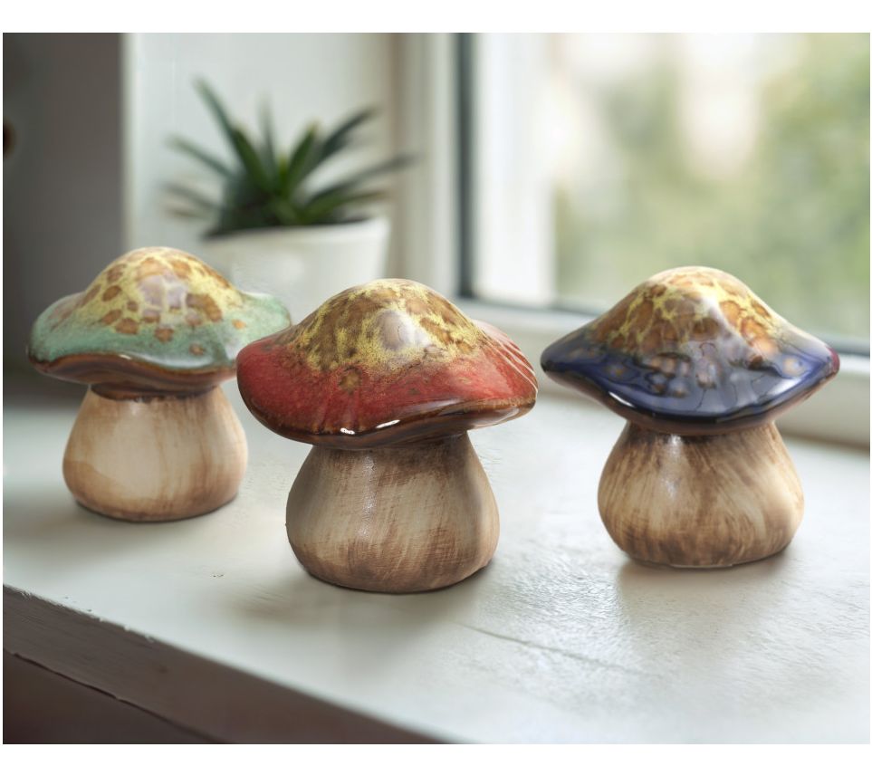 Liven up your home or garden with a delightful set of ceramic mushrooms from Gerson International. These whimsical accents are ideal for adding charm to garden beds, enhancing indoor plants, or brightening up your tabletop displays. Perfect for any nature-inspired decor, they bring a touch of fun and imaginative flair wherever you place them. From Gerson International.
