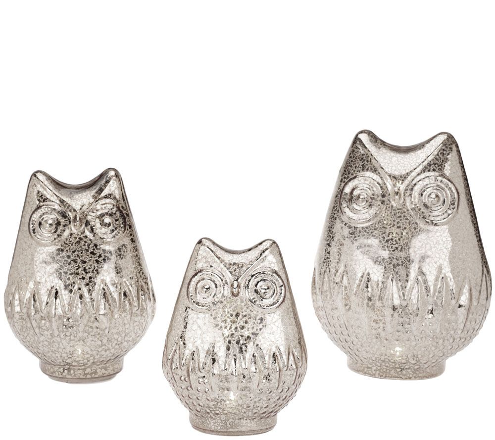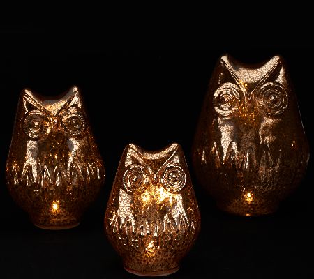 Set of 3 Mercury Glass Owls with Timer