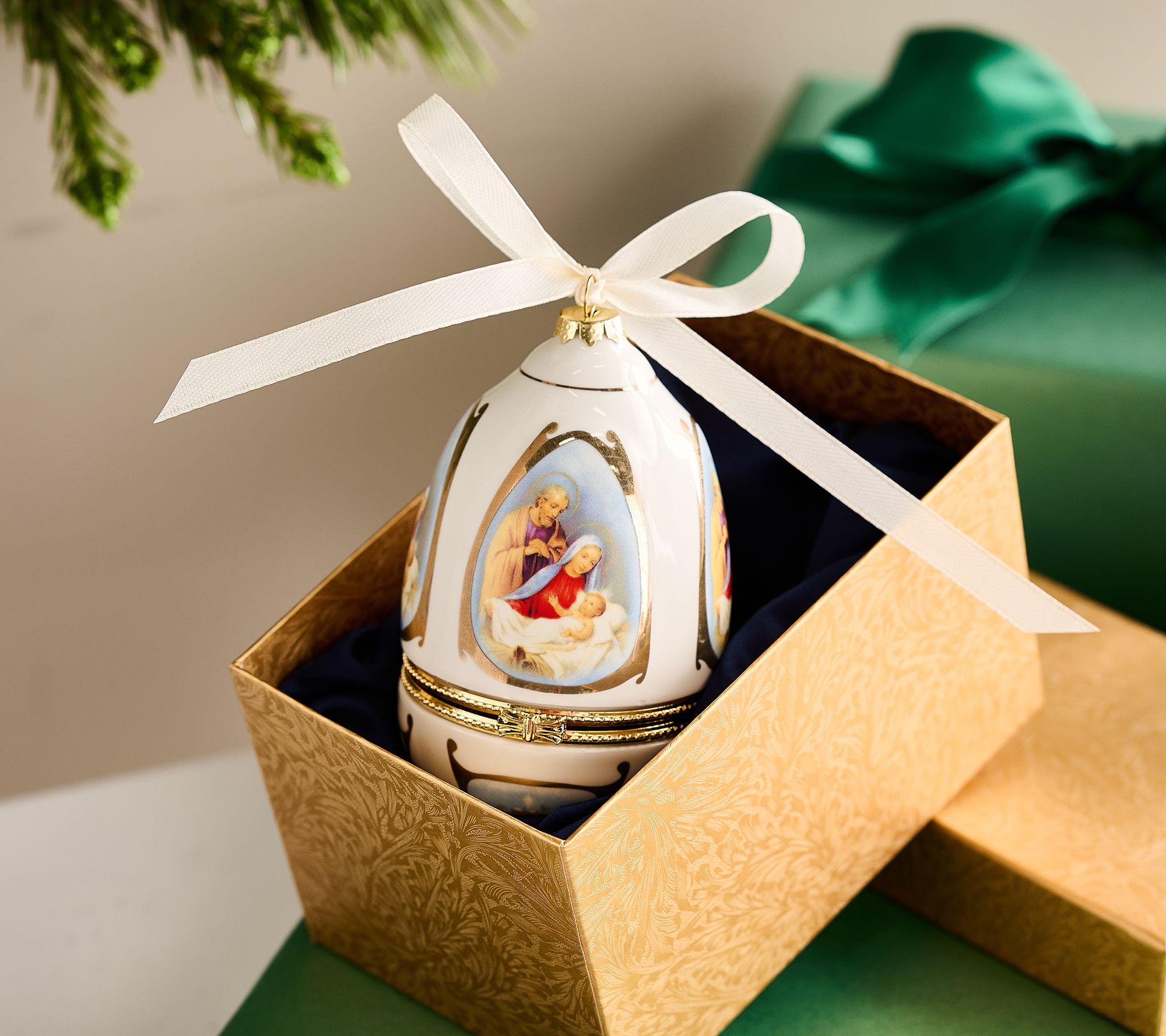 Beautifully decorated on the outside, this set of musical egg ornaments holds a secret inside: When opened, each plays a Christmas hymn recording by Valerie Parr Hill herself on the piano. What a gift! From the Valerie Parr Hill Collection.