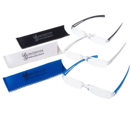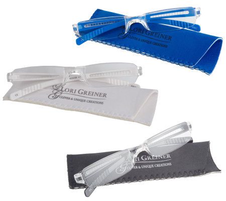 Fashion meets function. You'll love the subtle--and stylish--look of these chic rimless reading glasses. Each pair comes with its own slim, soft case for easy toting wherever you go. From Lori Greiner.