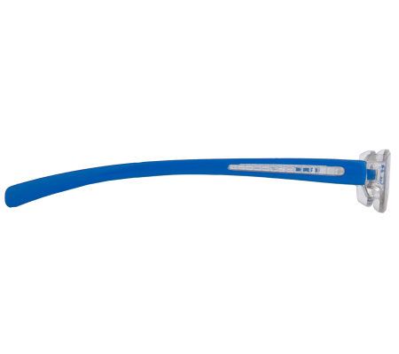 Includes three pairs of reading glasses in black, blue, and white; and three matching soft cases