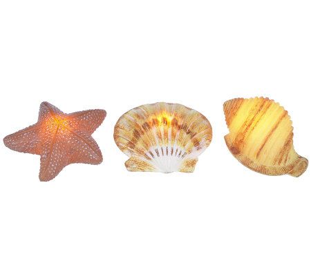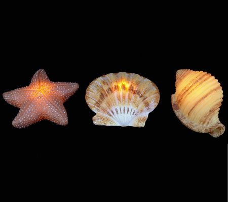 Beachy keen. Whether you have a beach house or just love all things nautical, this trio of seashell luminaries is a wonderful way to decorate. Each of the three luminaries is a different shape of seashell and features a timer mode--set it once, and it turns on and glows for five hours at the same time each day! From the Valerie Parr Hill Collection.