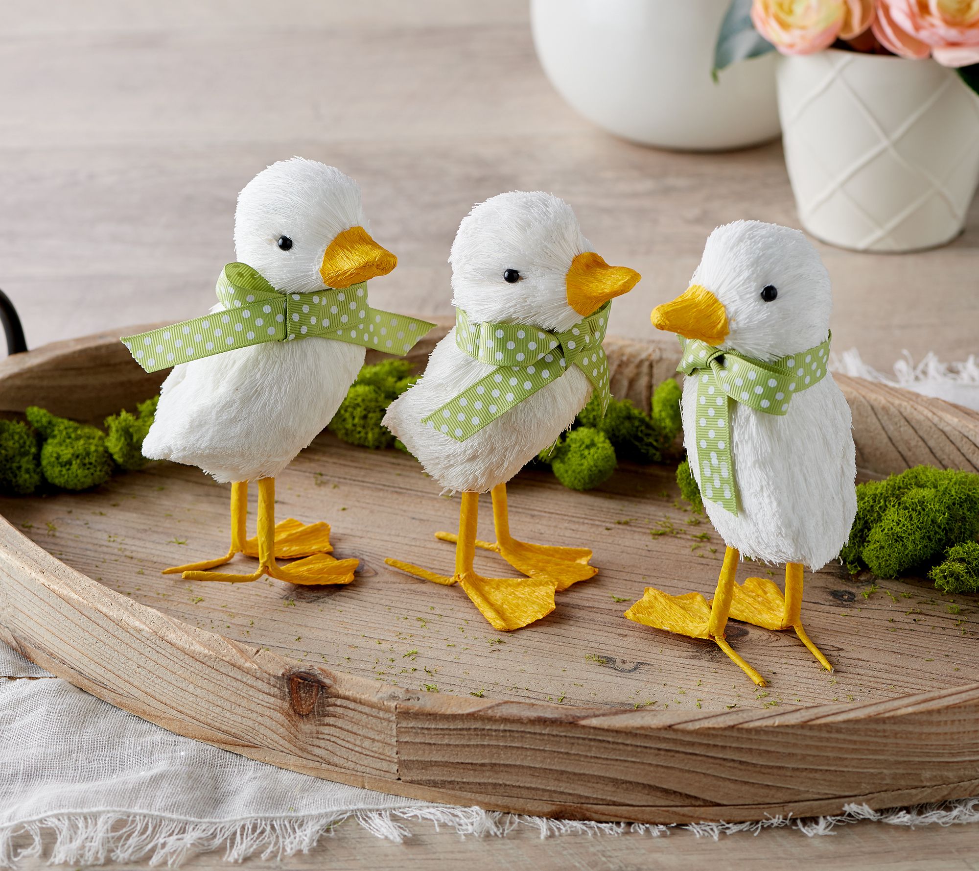 Set of 3 Sisal Ducks with Polka Dot Ribbons by Valerie