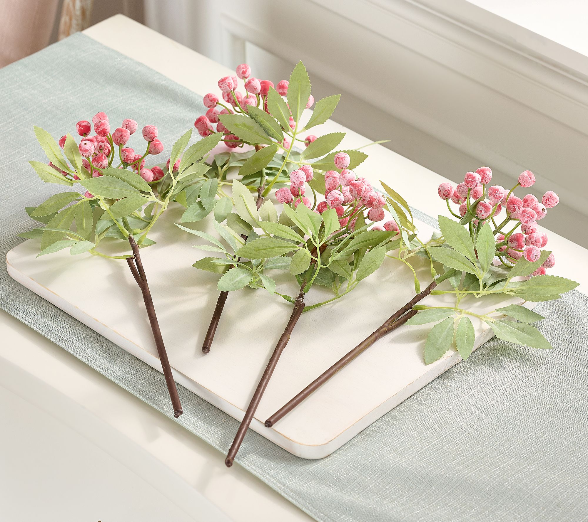 Spruce up your home for spring with fresh and unique touches like this set of four berry an leaf picks. From the Valerie Parr Hill Collection.