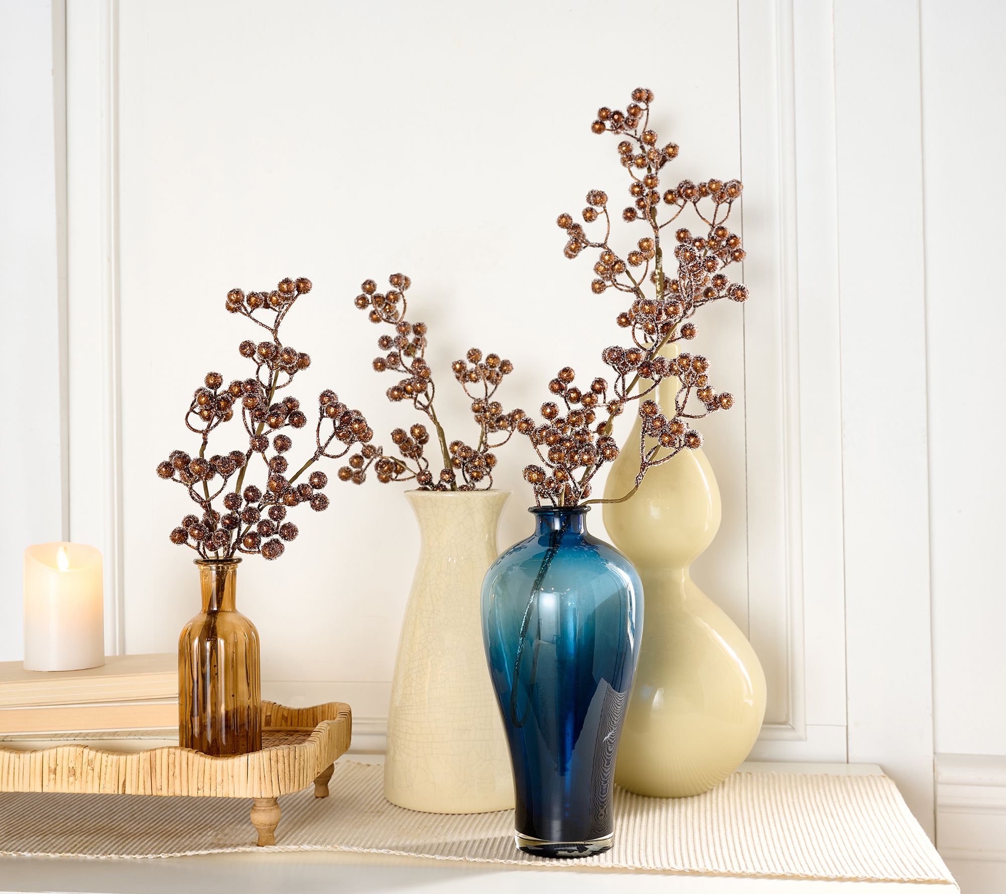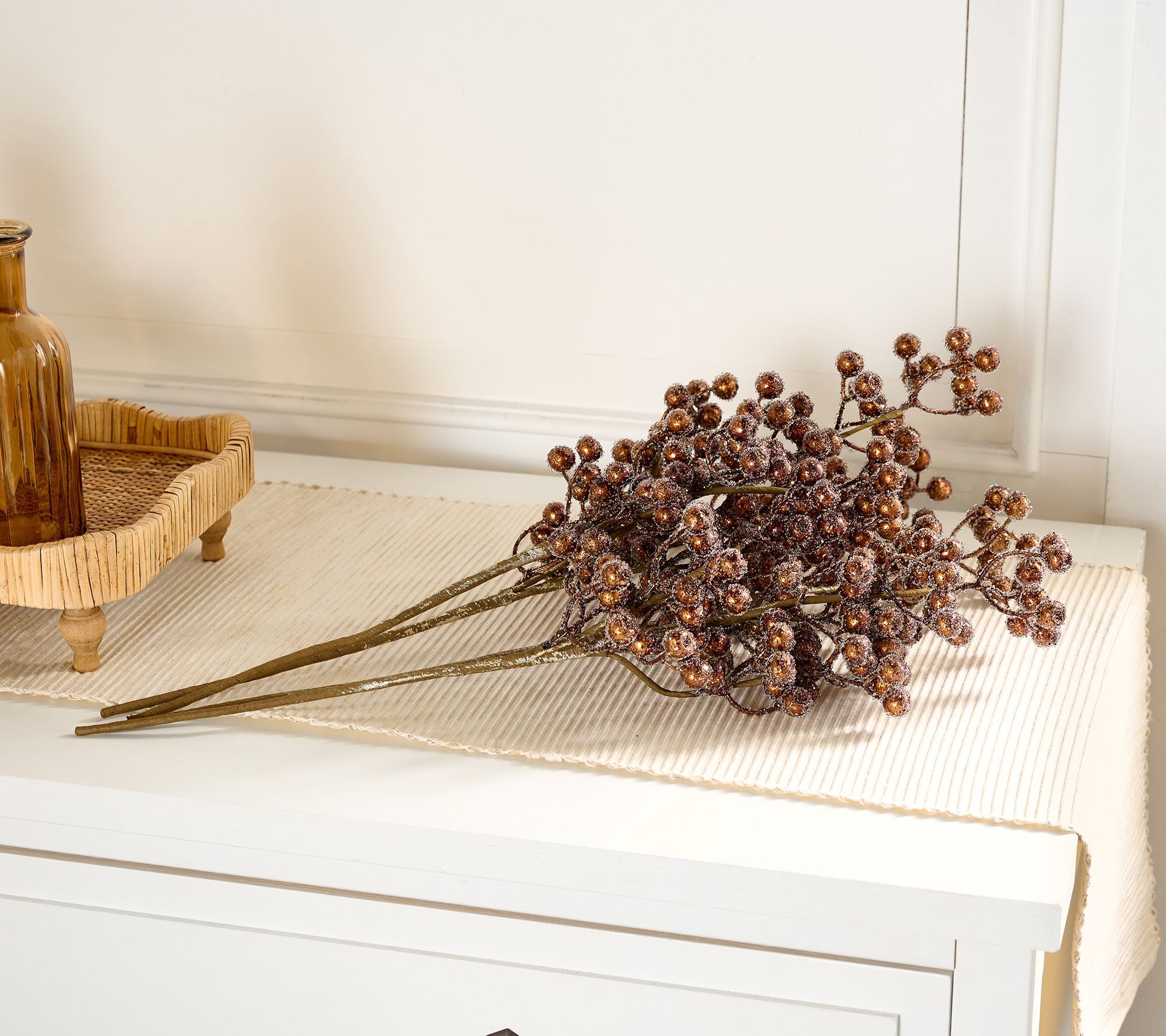 Not into whimsical decor? Elegance is on display with Valerie's glittered berry picks that catch the light on wreaths, garlands, and centerpieces. Each beaded berry brings vibrant texture and shine, whether they're arranged along a mantel, tucked into floral arrangements, or styled in a festive tablescape. From the Valerie Parr Hill Collection.