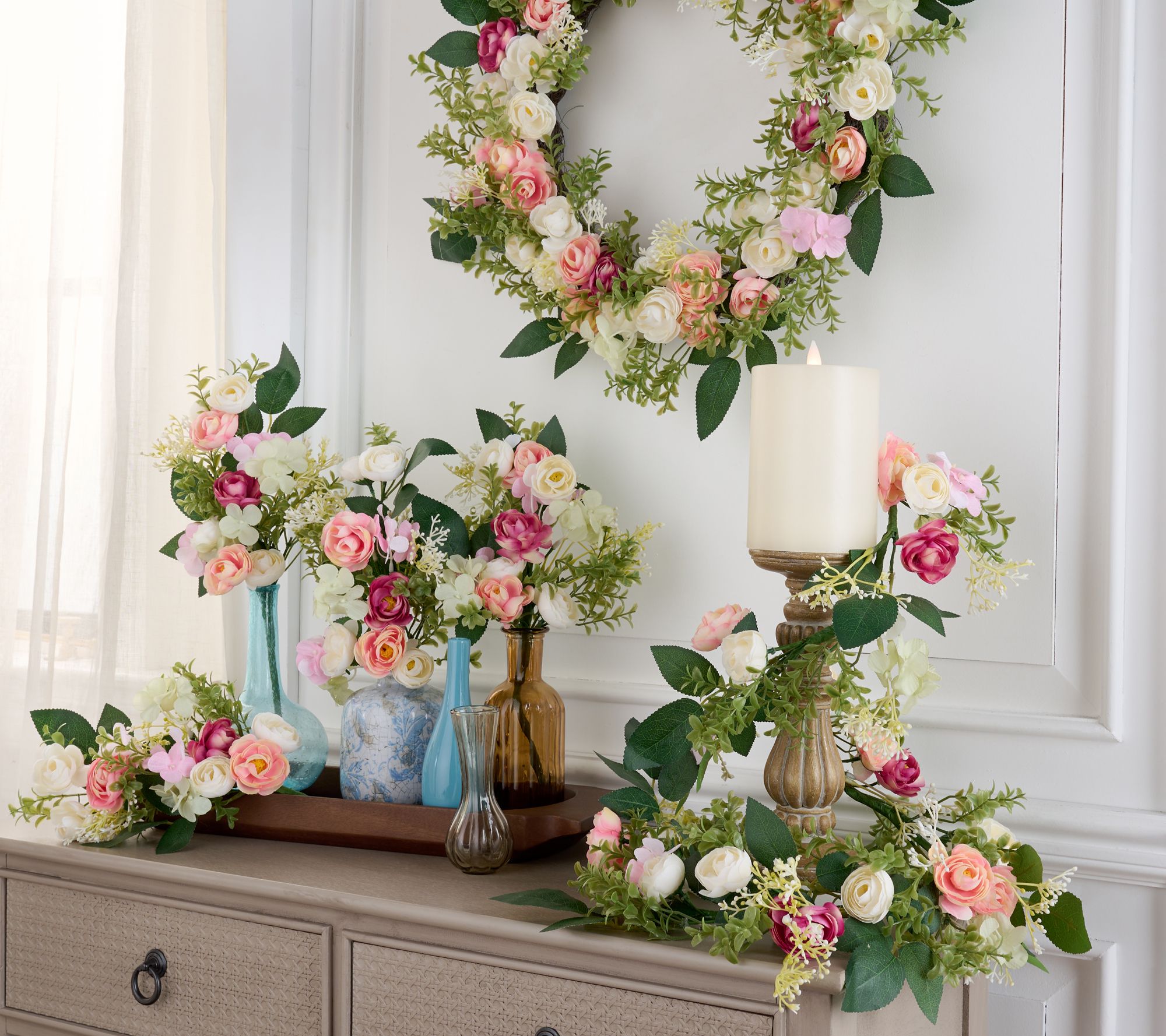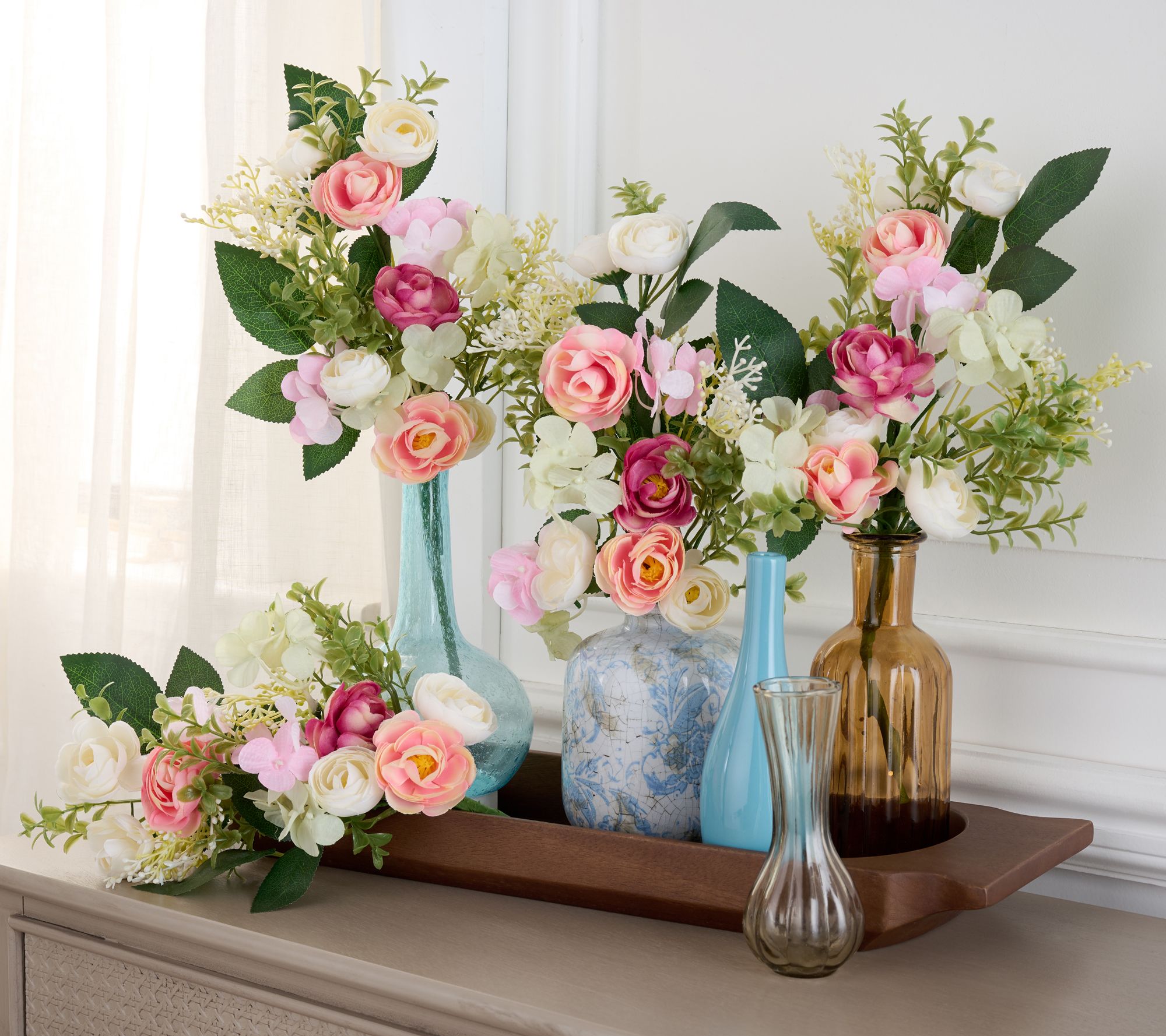 Don't wait for Mother Nature to bring spring! Brighten up your living space with this delightful set of ranunculus and boxwood picks. Pepper your space with vibrant lifelike blooms and greenery for a floral refresh on demand -- no matter the season. From The Valerie Parr Hill Collection.