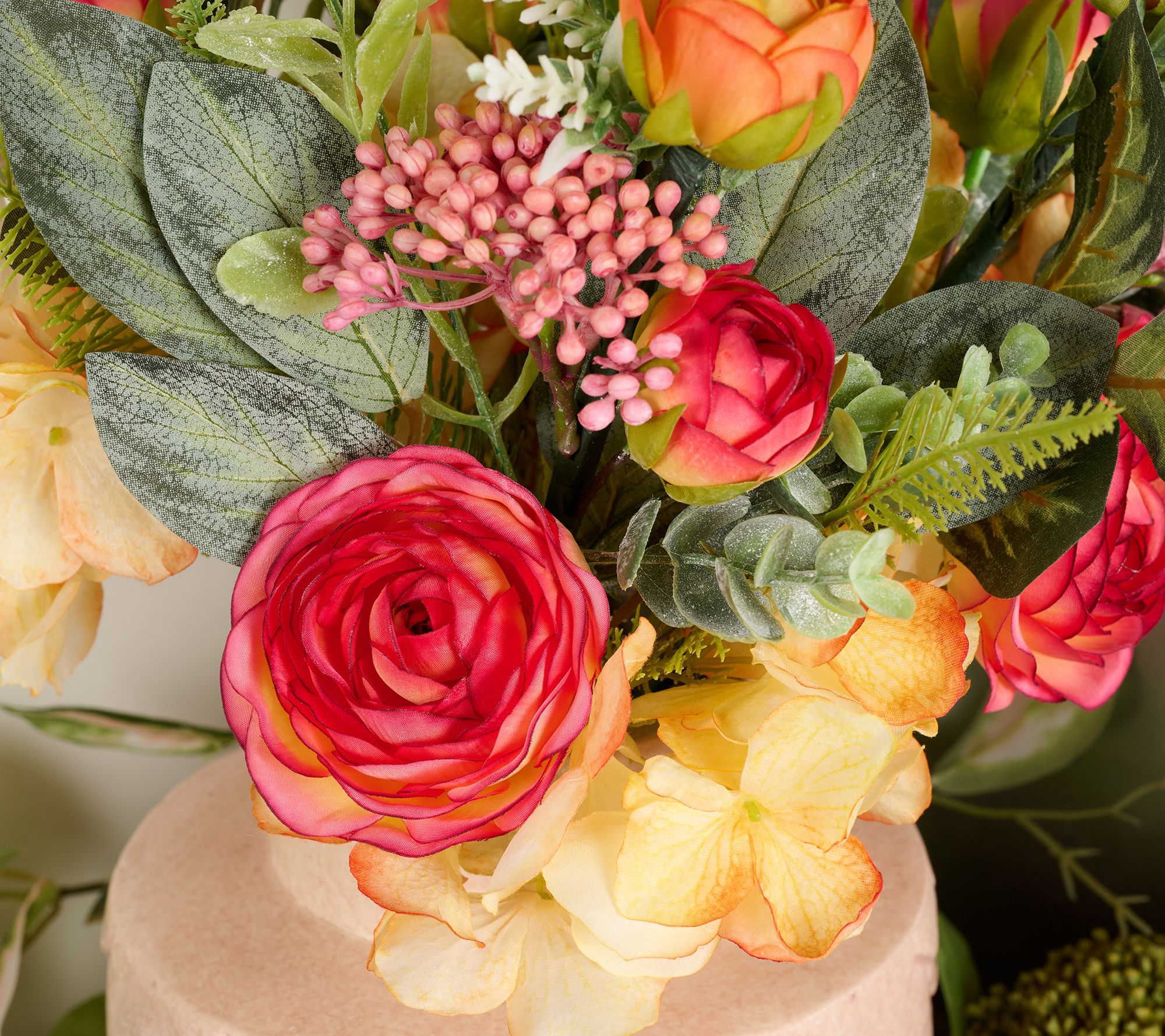 Brighten up any space with these lifelike picks -- the artful blend of faux roses, ranunculus, hydrangeas, and greenery brings timeless beauty to mantels, vases, or centerpieces year-round. Add a touch of floral charm anywhere you like, no green thumb required. From the Valerie Parr Hill Collection.
