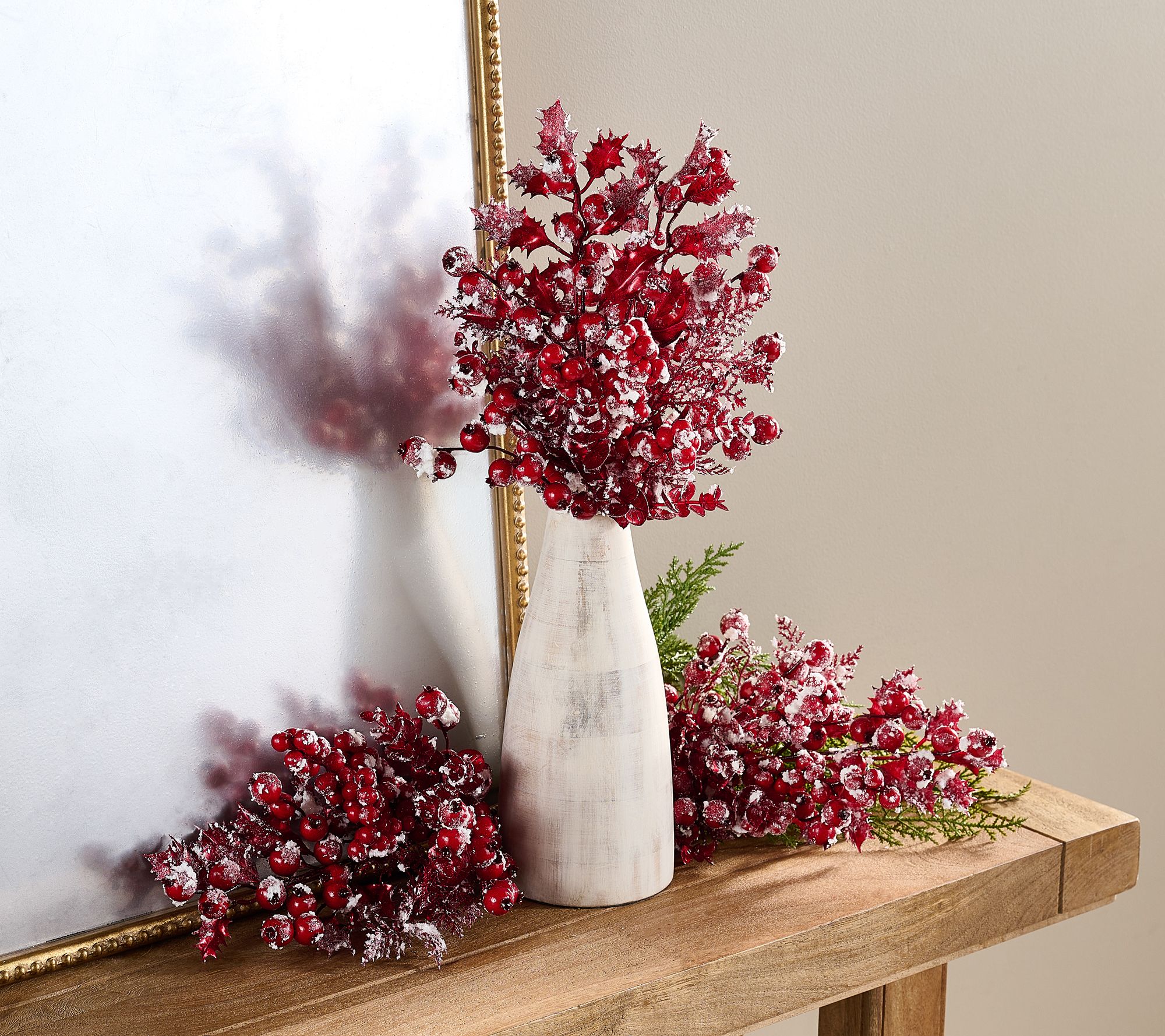Get a head start on your winter wonderland (no matter where you live) with this set of snowy faux berry picks. Flocked and glittered, they lend an icy appearance to put you in a seasonal mood. From the Valerie Parr Hill Collection.