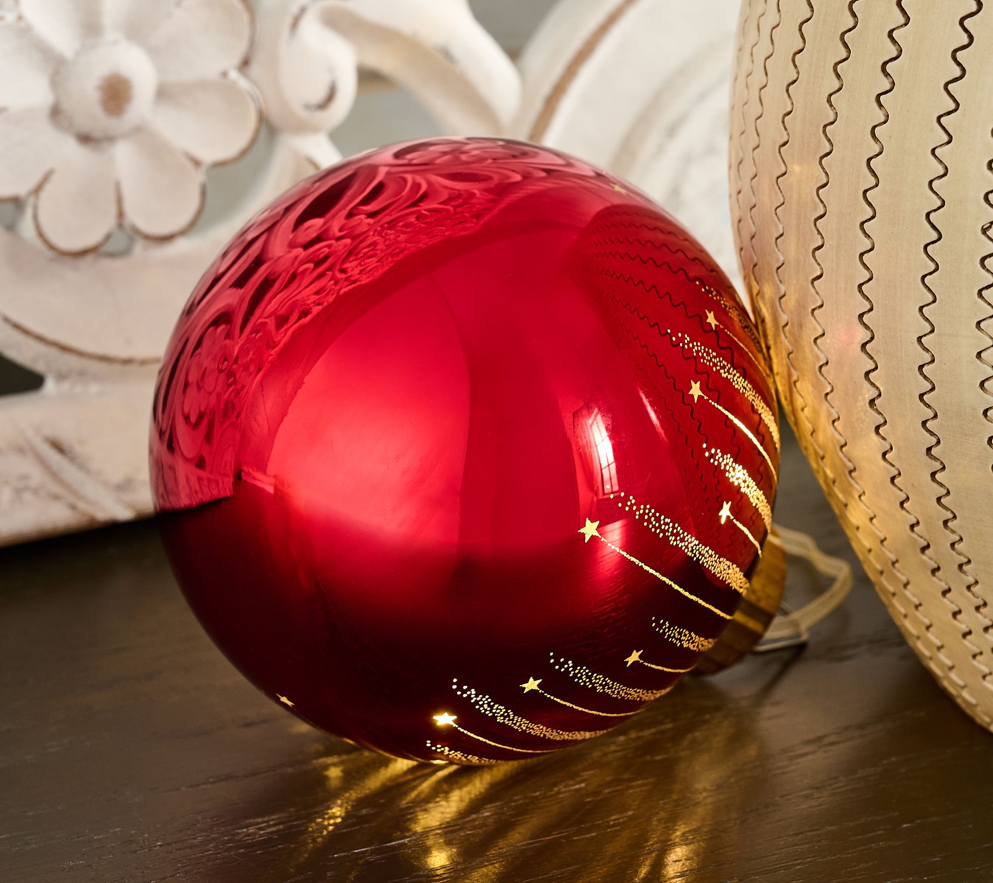 Holiday gatherings shine a little brighter when the gentle glow of these illuminated glass ornaments sparkles among the decorations. With glistening starry night designs winding across each ornament, they add a magical touch to wreaths, centerpieces, or your tree and create a festive mood that friends and family will remember. From the Valerie Parr Hill Collection.