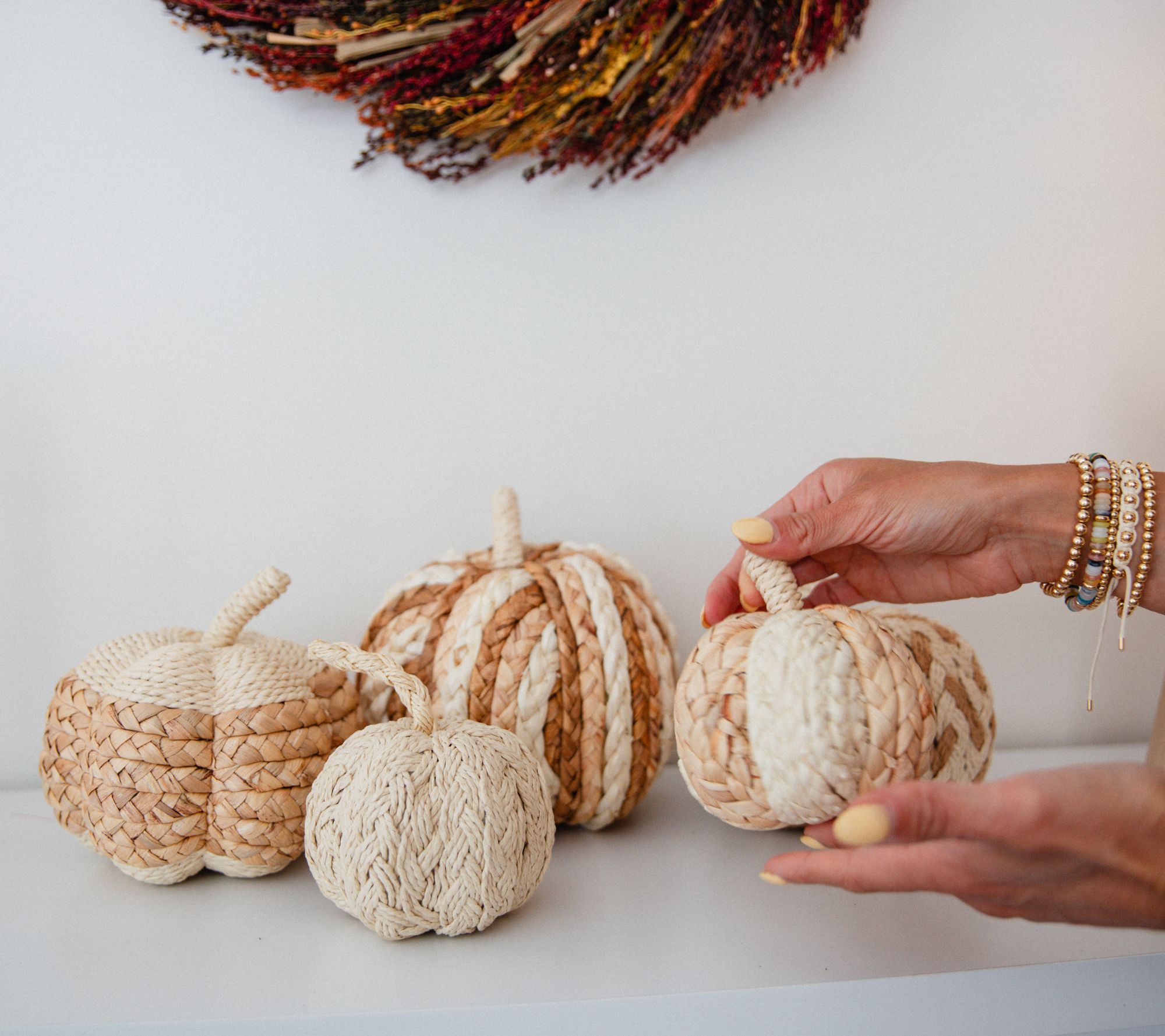 Add a touch of rustic charm to your harvest decor with this set of rattan pumpkins. Perfect for creating a cozy seasonal atmosphere, they come in various sizes to add visual interest to your space. From Lauren McBride.