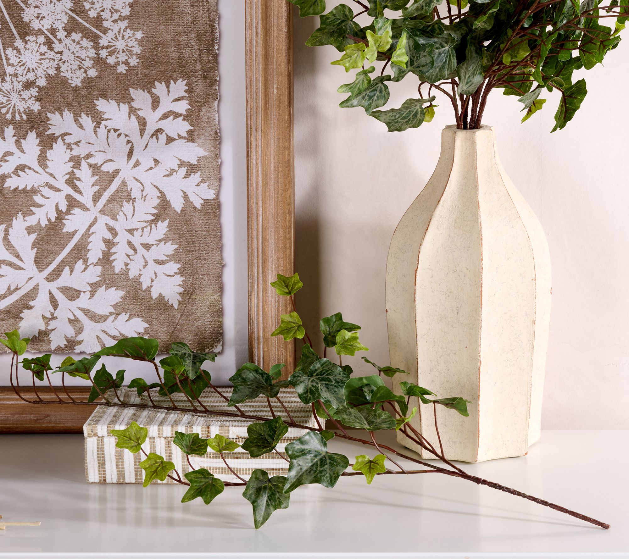 Transform bookshelves or accent tables with the lush greenery of these lifelike ivy leaf sprays, designed to cascade beautifully for a touch of garden-inspired elegance. Arrange all six sprays together for dramatic impact or layer individually with other decor to create your own fresh-inspired look for any room. From the Valerie Parr Hill Collection.