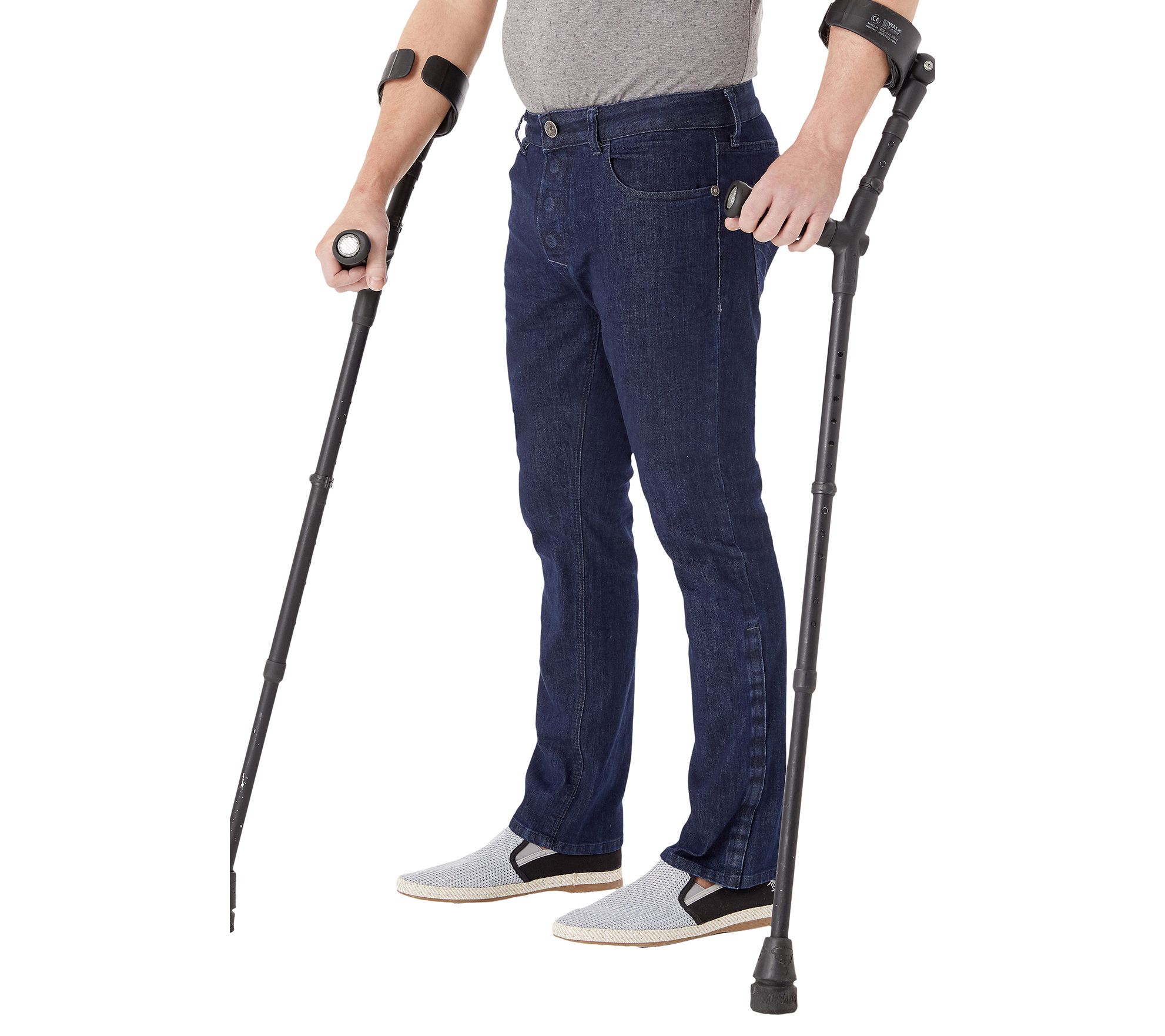 Designed with features to make dressing easier for people with disabilities, these classic straight-leg jeans feature a versatile wash and hook-and-look side seam detail. From Seven7.