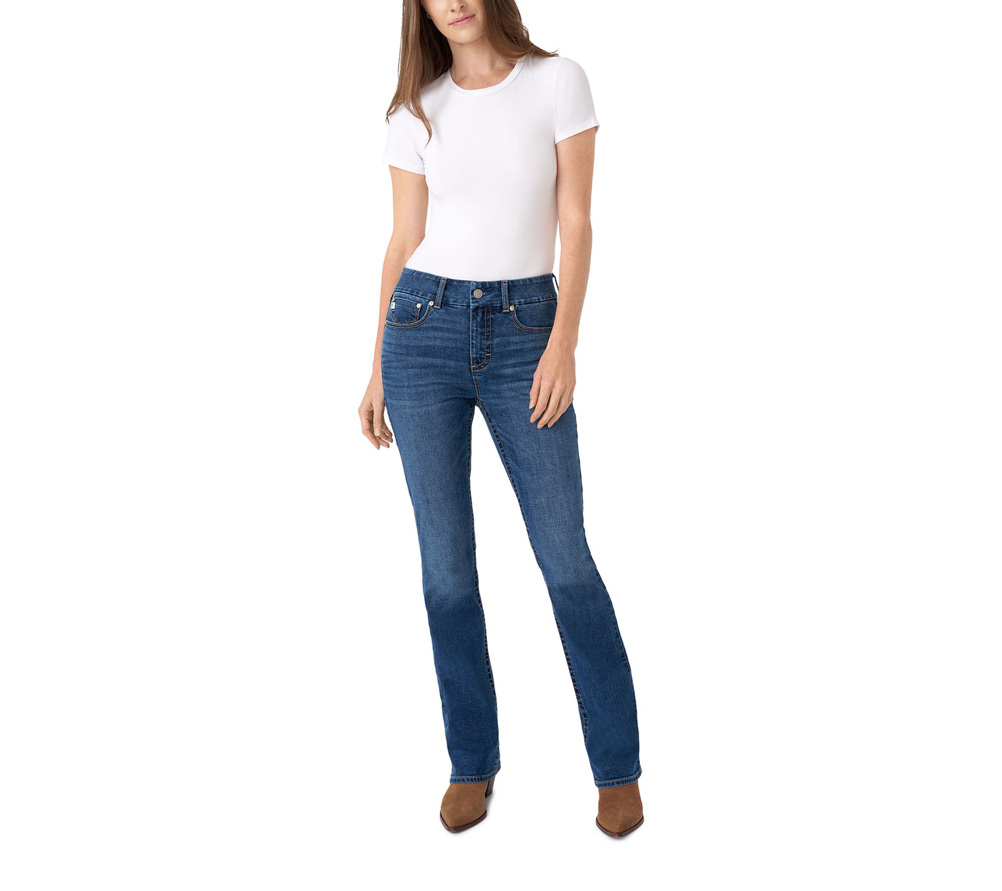 Whether you're heading out for coffee with friends or dressing up for a casual Friday at the office, these boot-leg jeans offer a flattering silhouette and all-day comfort. Designed with thoughtful tummy-smoothing details, they bring confidence and style to every step. From Seven7.