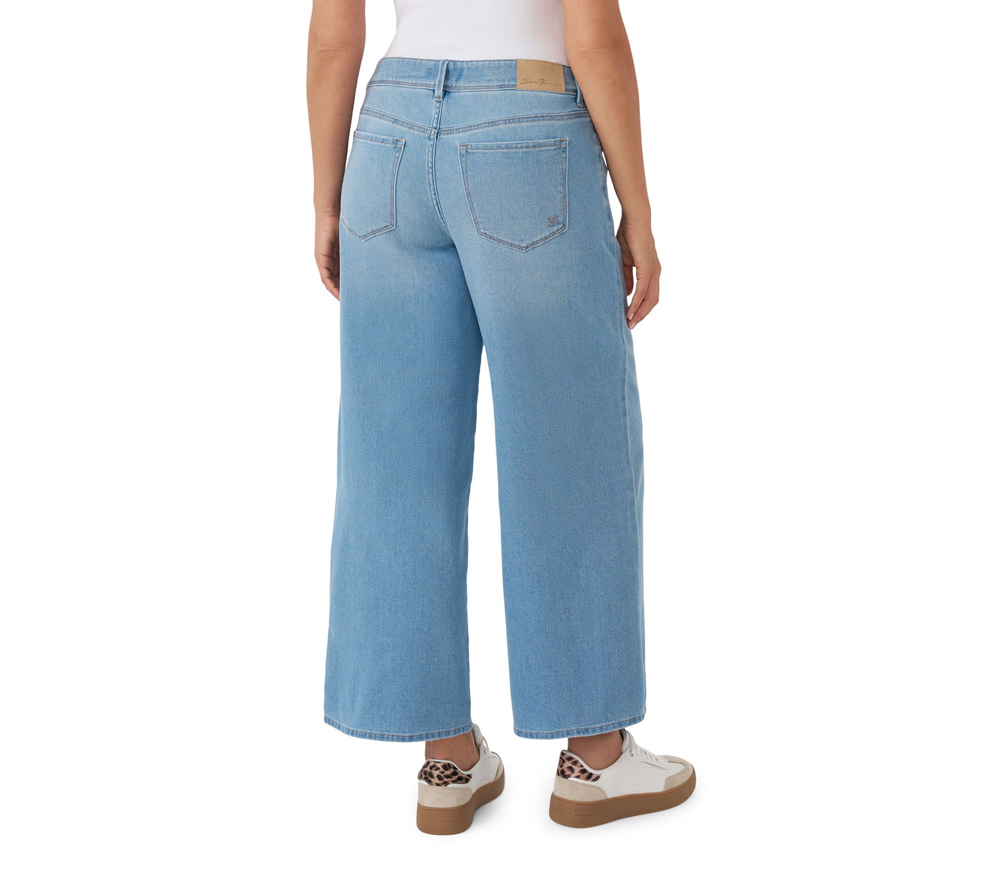 • Leg Shape: wide leg; widens fashionably from thigh to leg opening