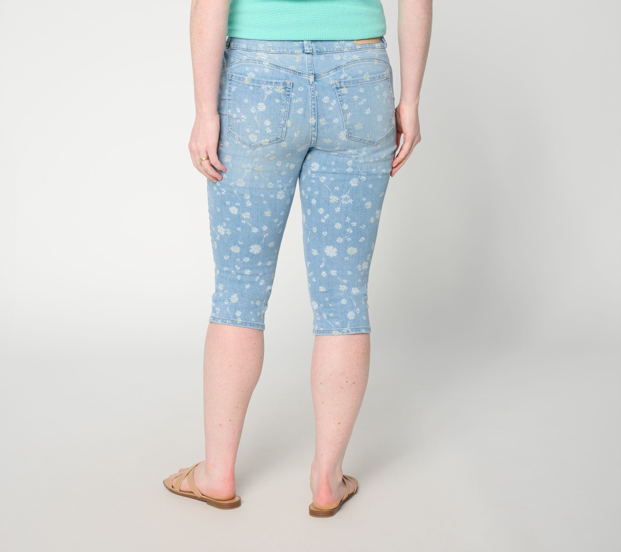 No gap -- no cap! Whether you're heading out for a day of shopping or relaxing on the patio, these No Gap skimmer jeans make the cut with their stretchy fabric and waistband that fits smooth all the way around. The skimmer length plays nice with sneakers, sandals, and lots of sunshine. From Seven7 Jeans.