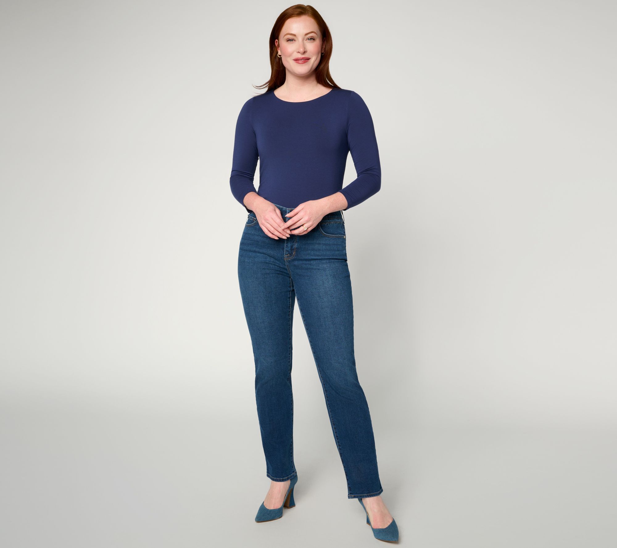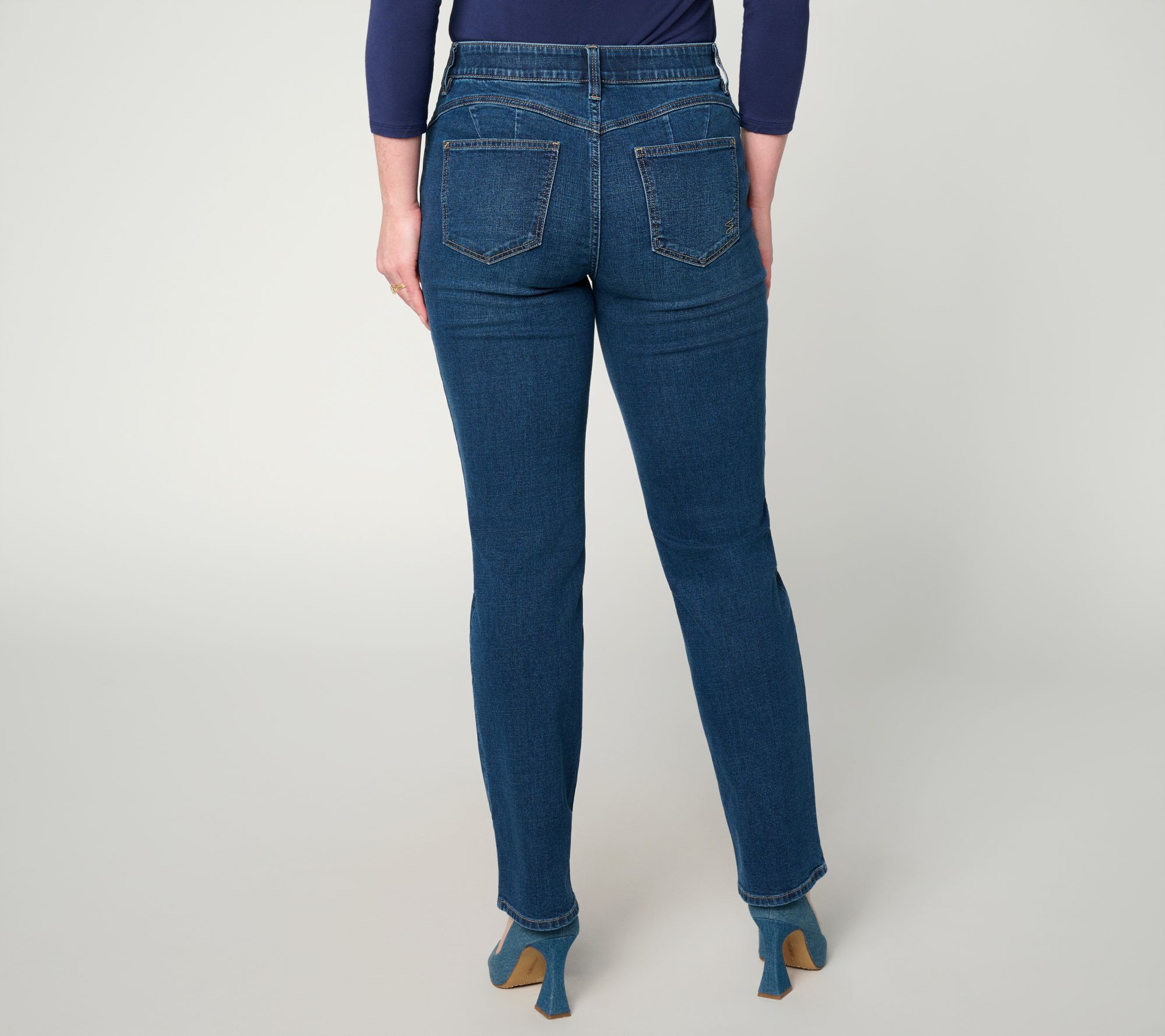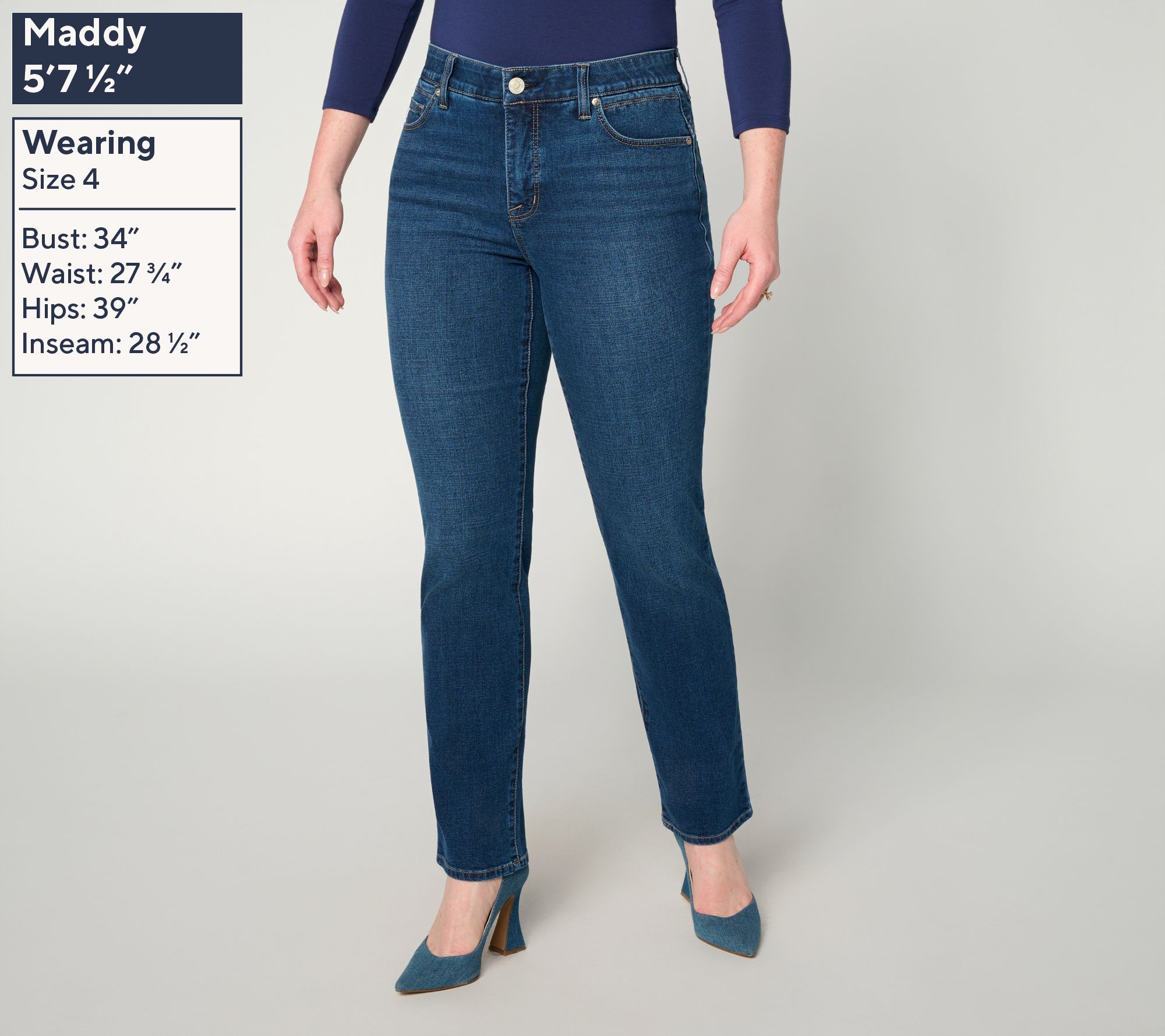 Refresh your wardrobe staples with these uplifting straight-leg pants, ideal for coffee runs, creative days at work, or nights out. A mesh panel and hidden no-gap elastic waistband help provide a seamless fit, while the slim silhouette contours to your shape. From Seven7 Jeans.