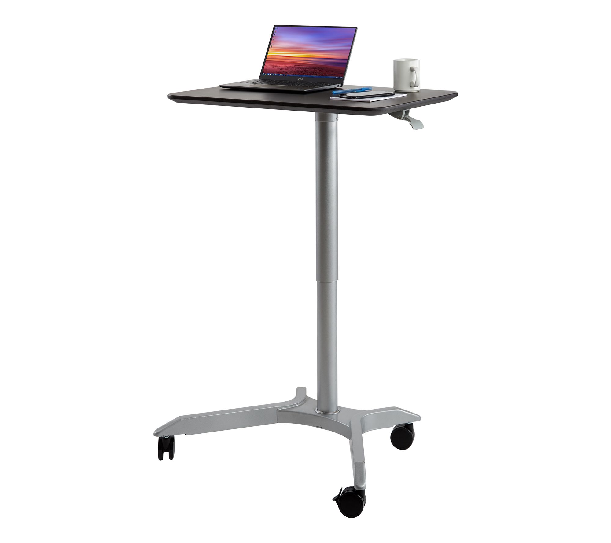 Transform your workspace with the Seville Classics airLIFT Pro Pneumatic Sit-Stand Mobile Desk Cart. This versatile desk offers a generous MDF desktop and adjustable height for ergonomic comfort, making it perfect for home or office use. Effortlessly move it around with the smooth-gliding casters for ultimate flexibility. From Seville Classics.