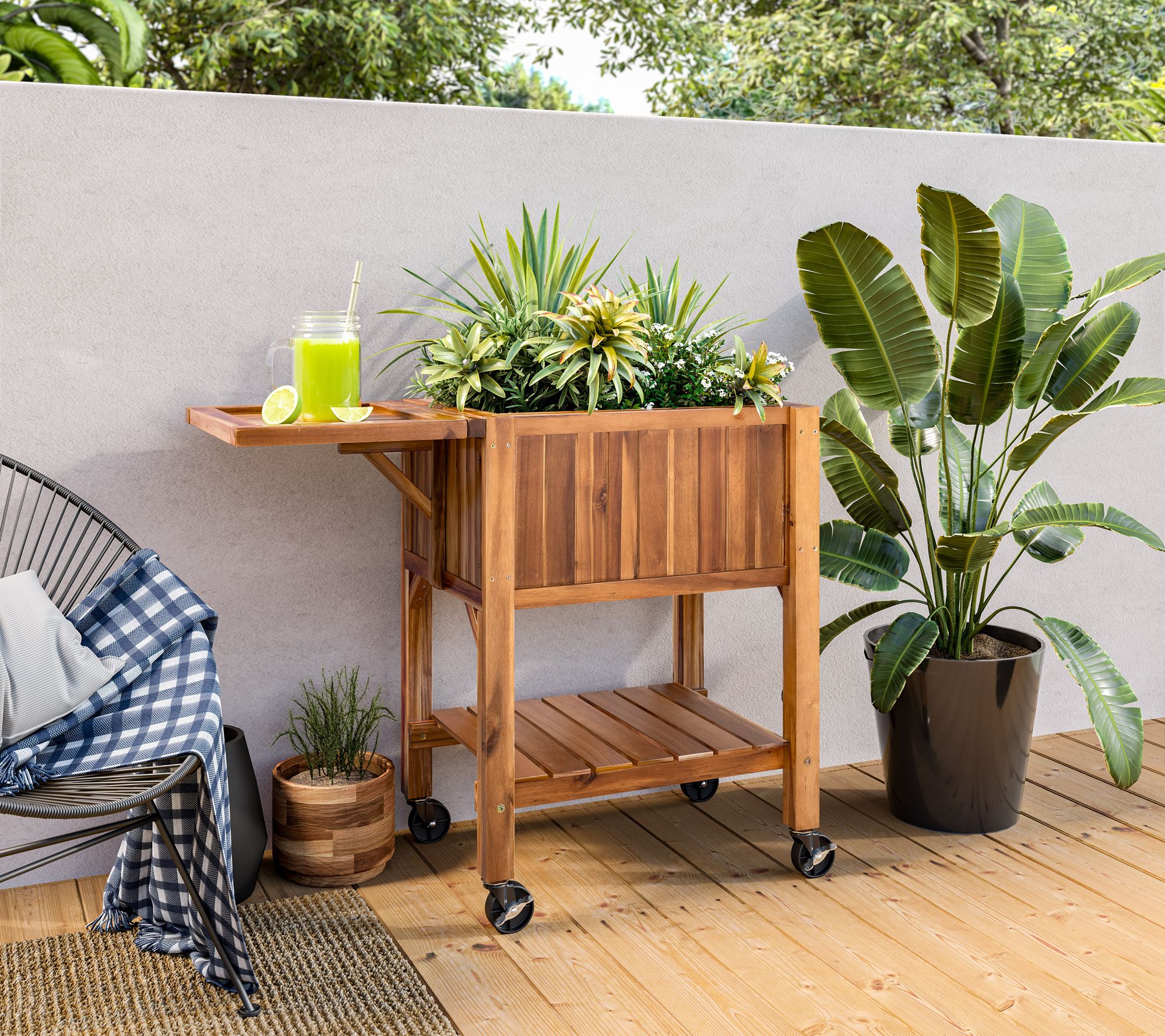 Discover the joy of gardening with the Seville Classics acacia wood raised garden bed planter. Perfect for outdoor enthusiasts, this planter stands at an ideal height, making it easy to tend your garden without the strain of bending. The wheels provide convenience to move your gardening station as seasons change, while the slatted base ensures proper drainage. From Seville Classics.
