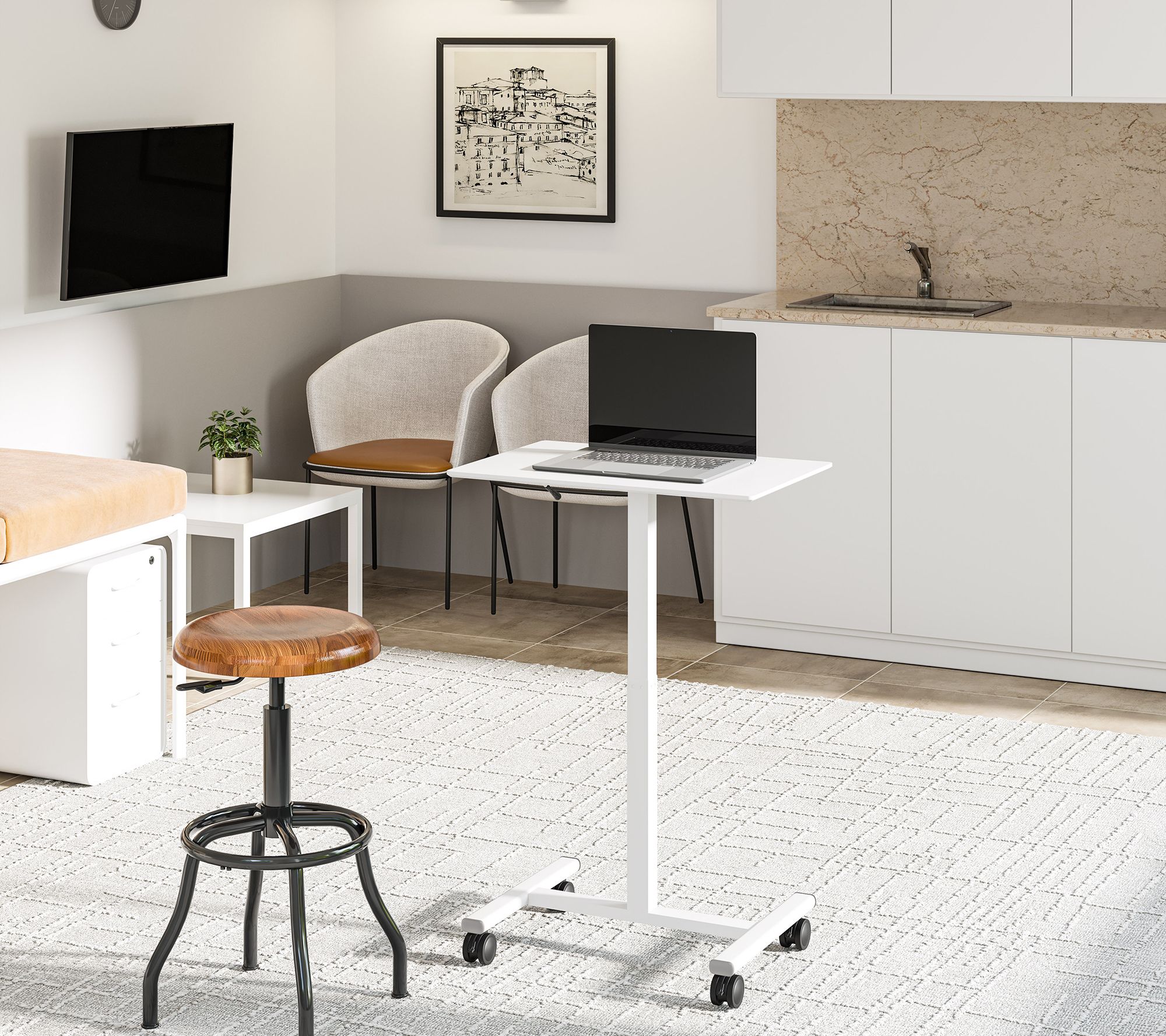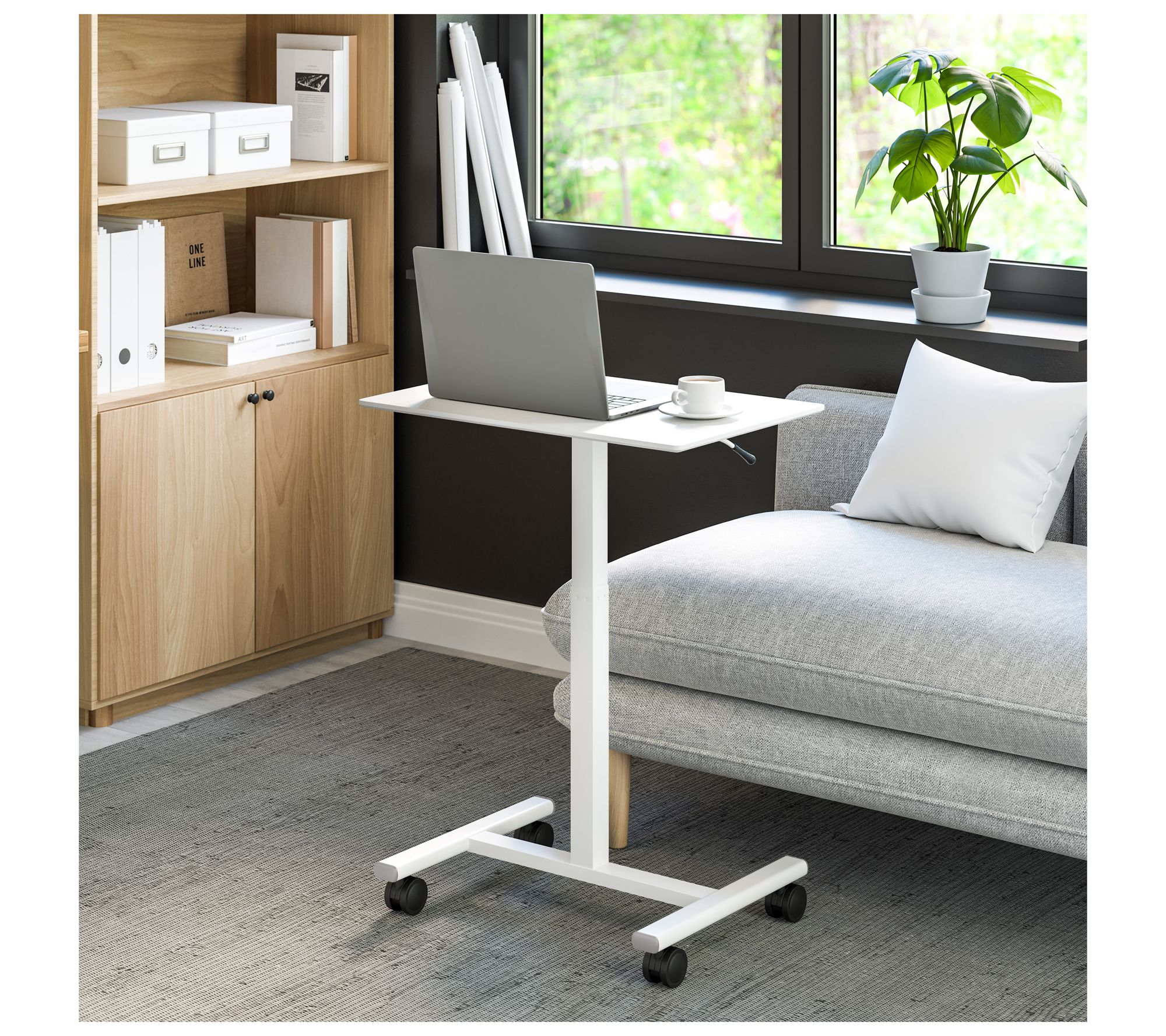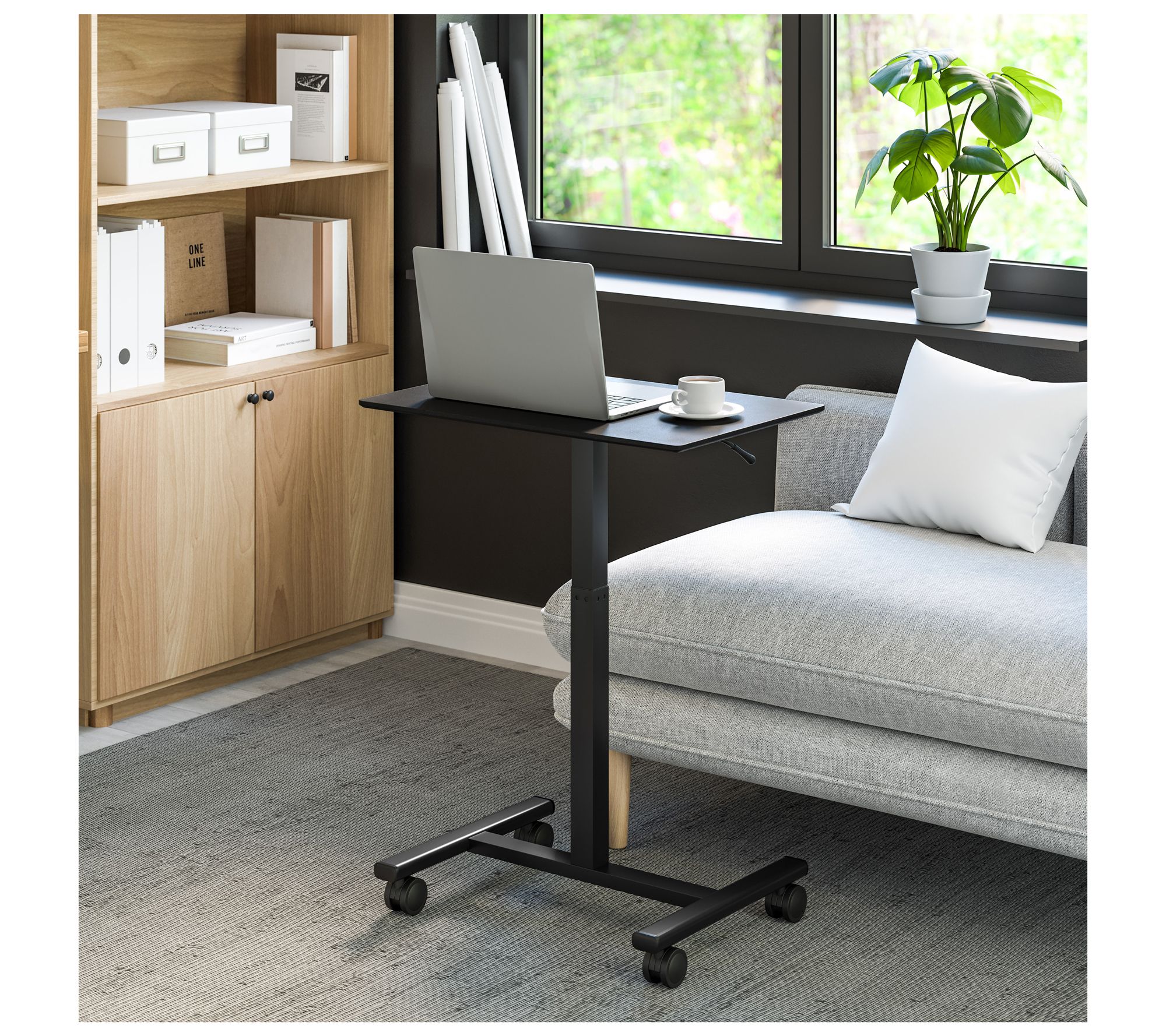 Create a flexible workspace just where you need it with this height-adjustable mobile laptop cart table. The smooth-rolling design glides alongside your sofa, recliner, or bed, offering a sturdy spot for laptops, tablets, or late-night snacks. Customize the height for sitting or standing tasks, making work, study, or relaxing more comfortable. From Seville Classics.