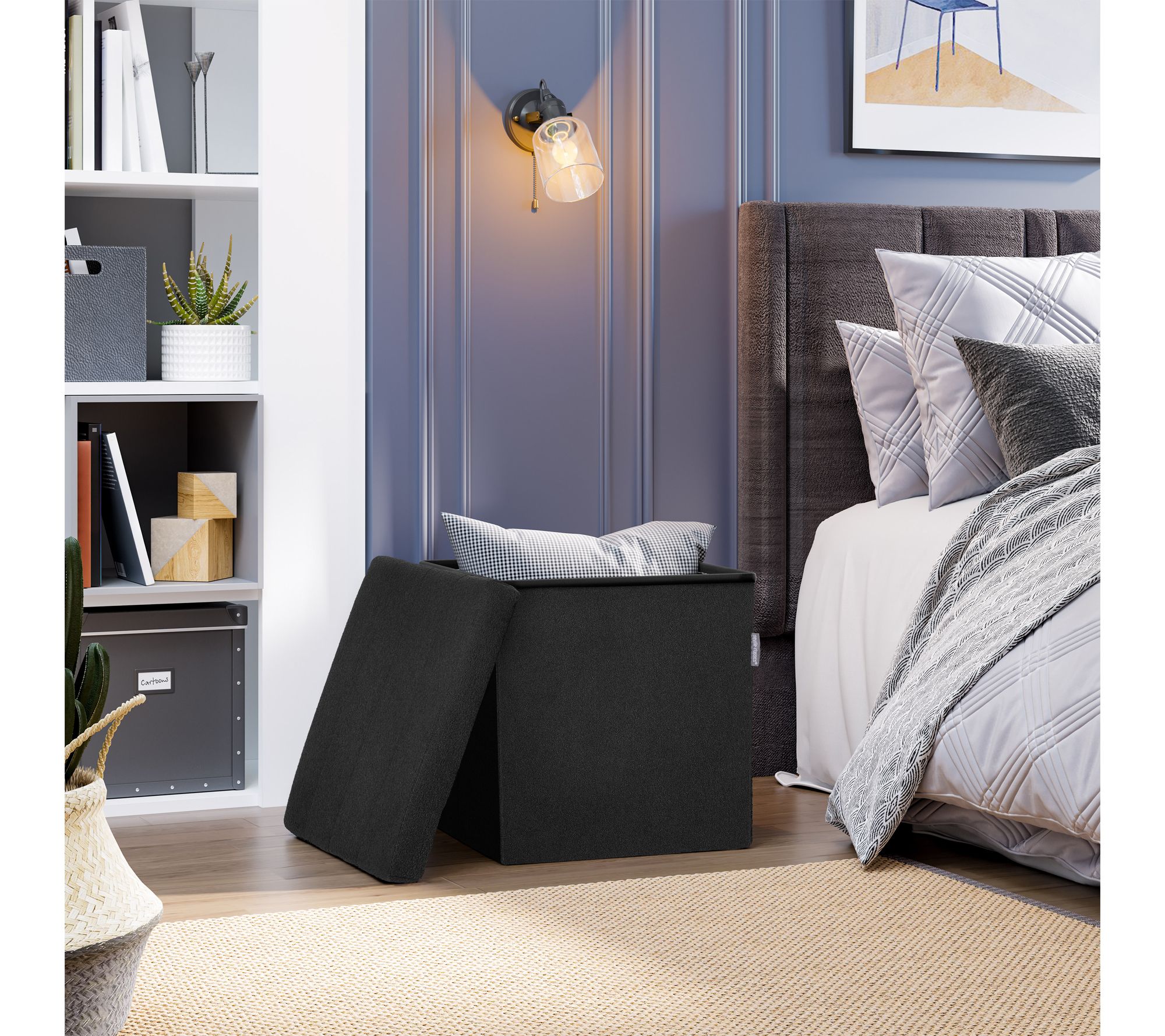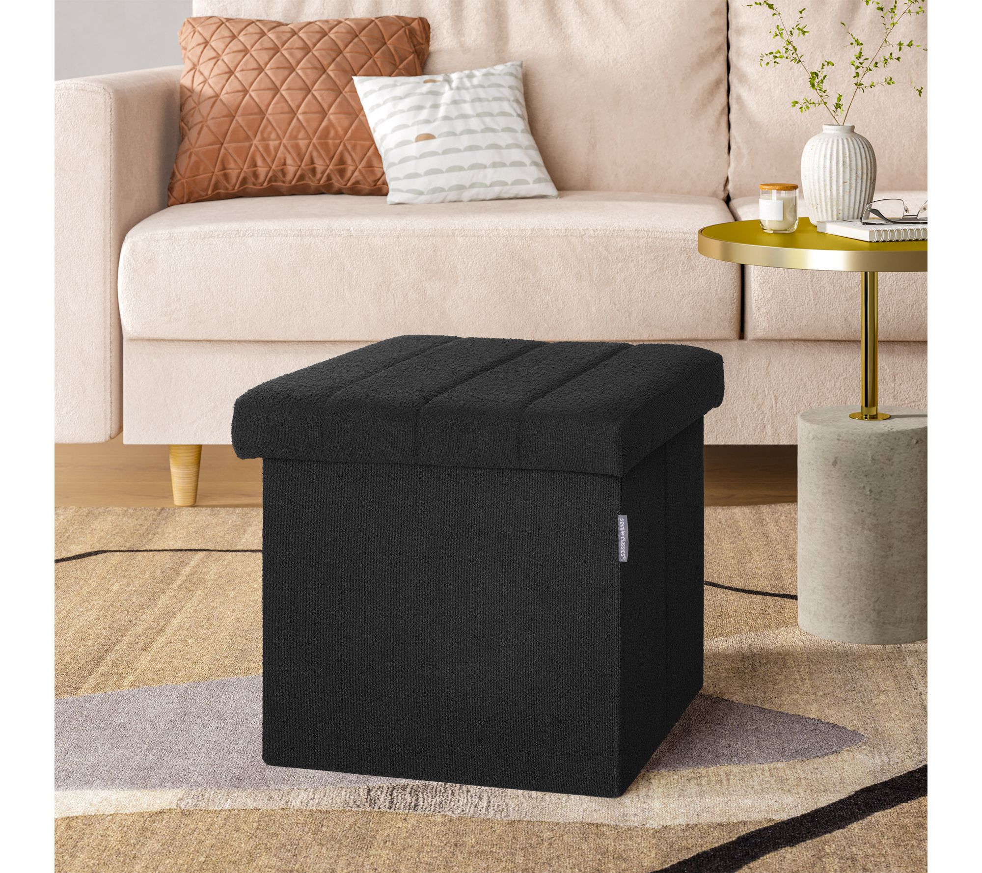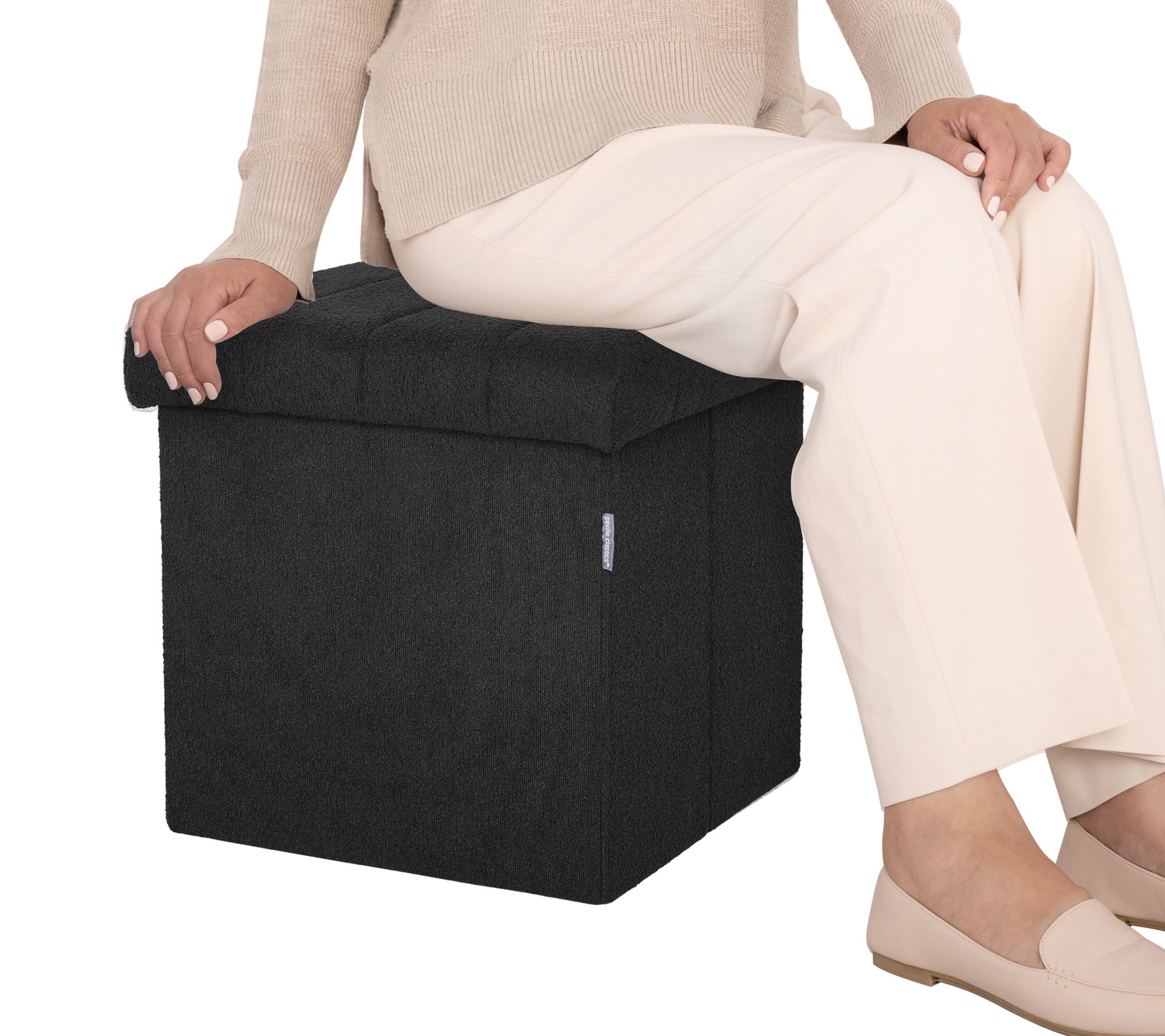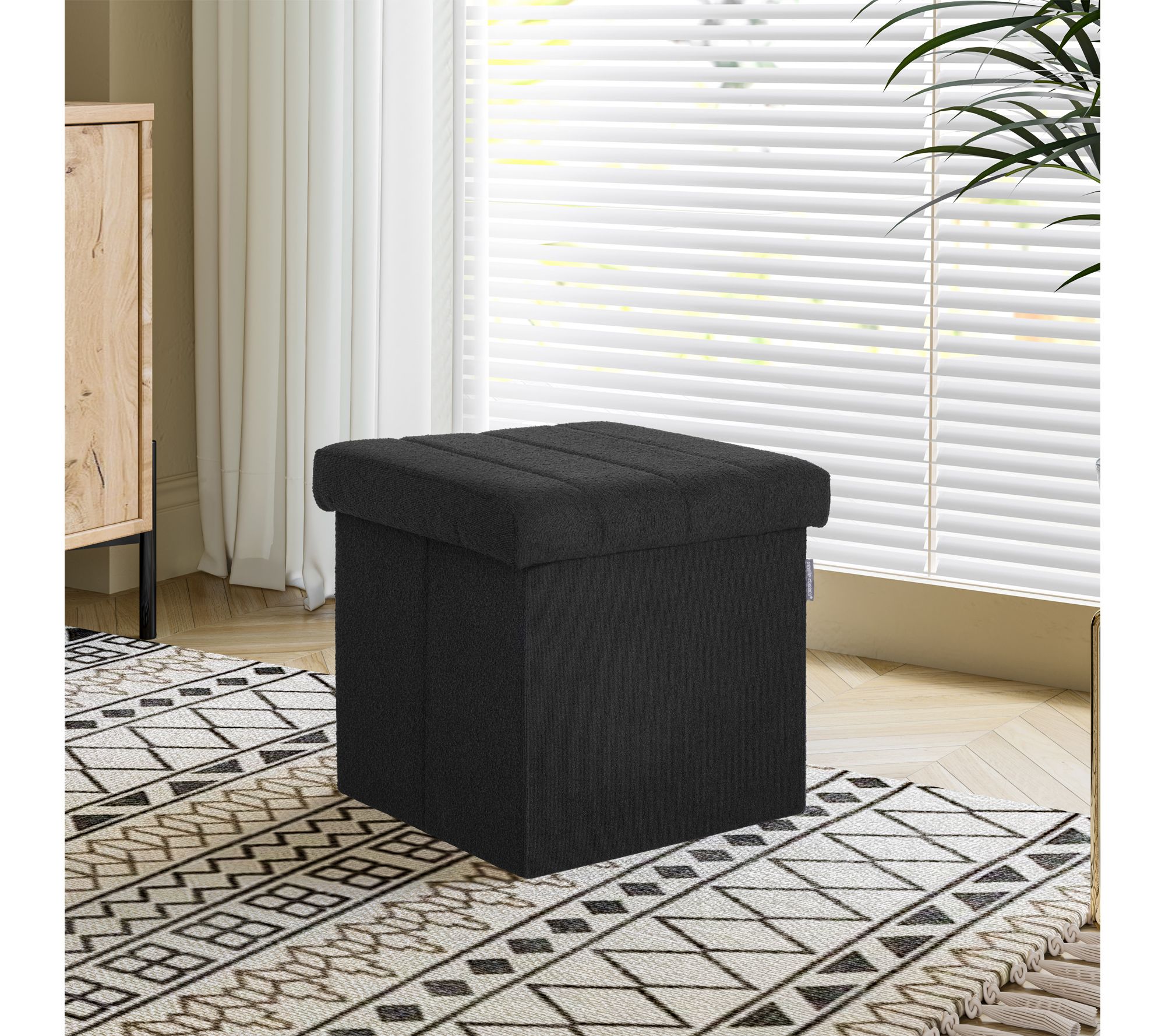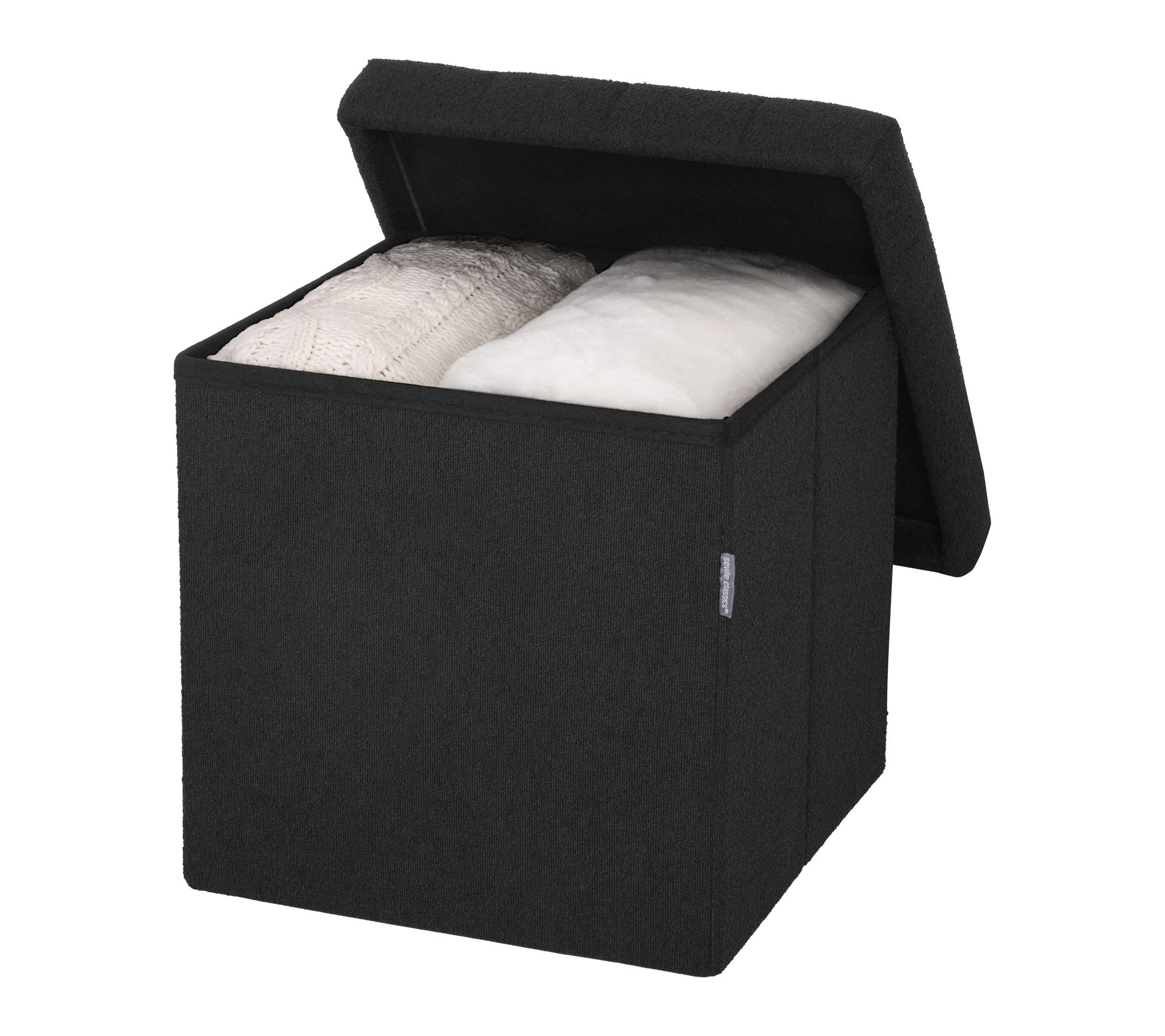 Tuck away clutter and add a touch of contemporary style to your home with this channel tufted ottoman, featuring plush black boucle upholstery and hidden storage. Whether serving as an inviting footrest in the living room or a spot to stash extra blankets or books in the entryway, it brings both function and flair to your favorite spaces. From Seville Classics.