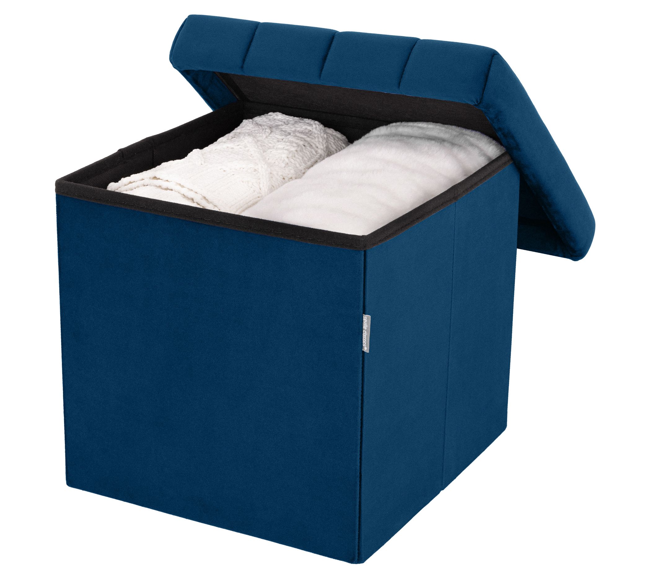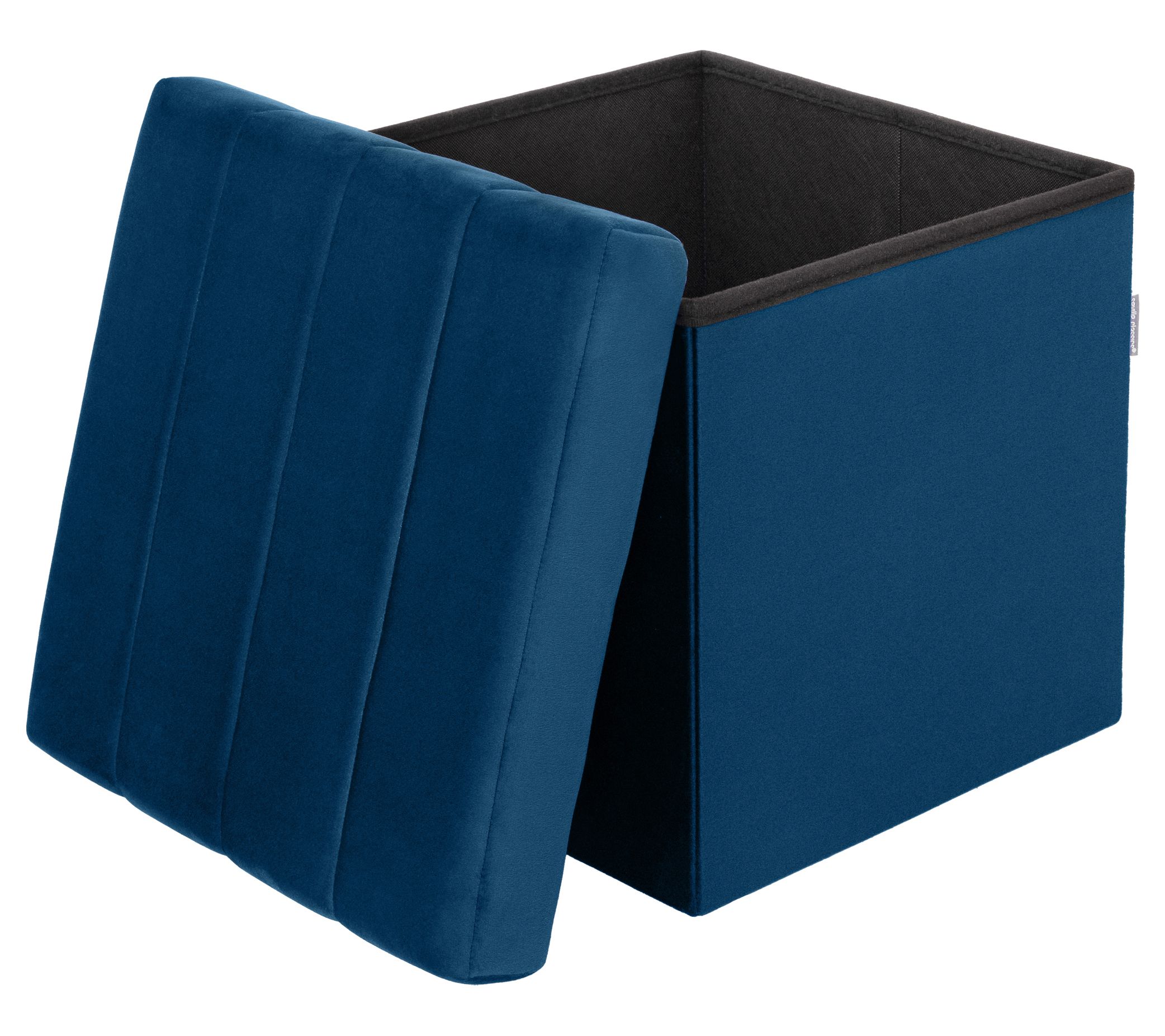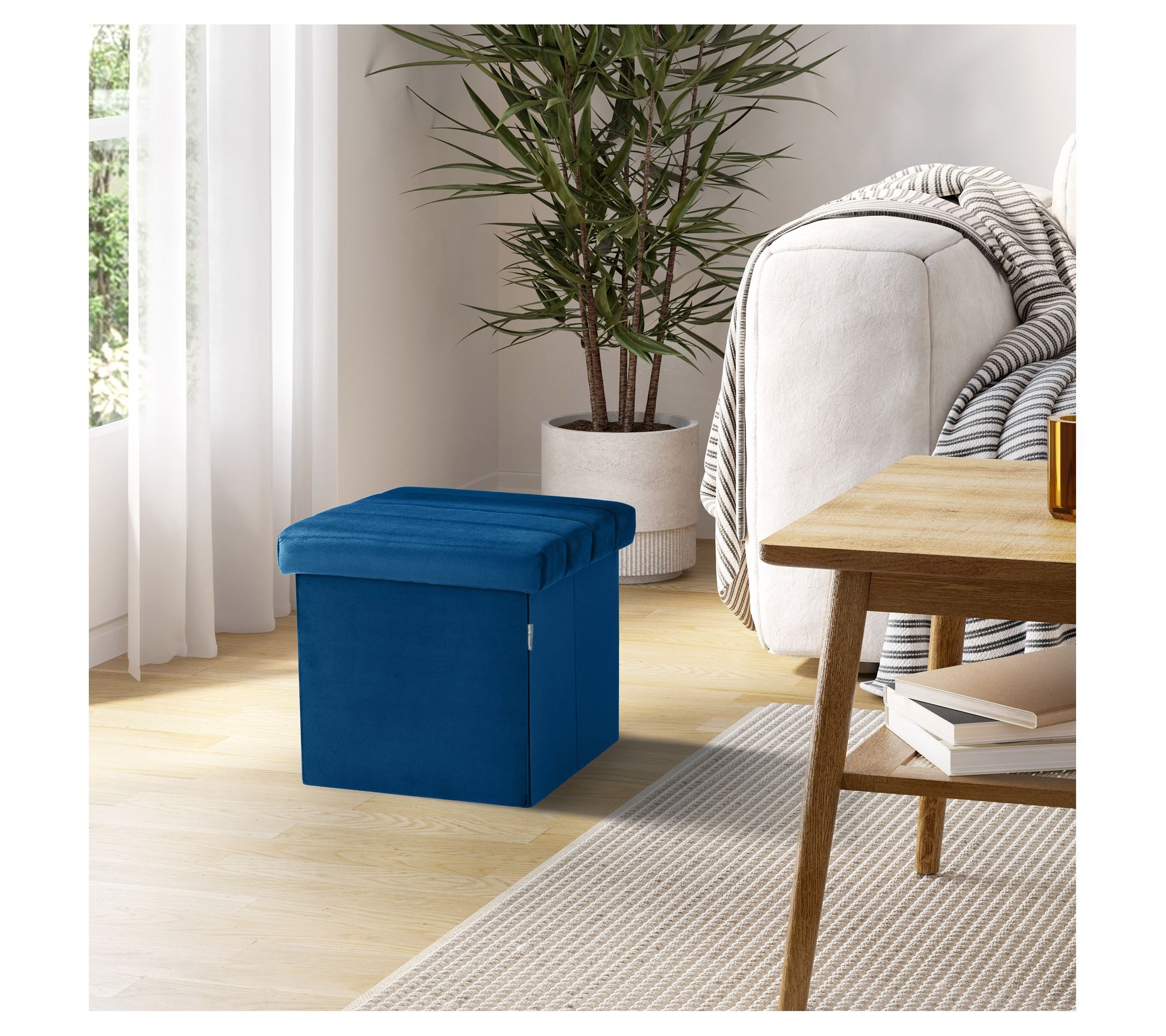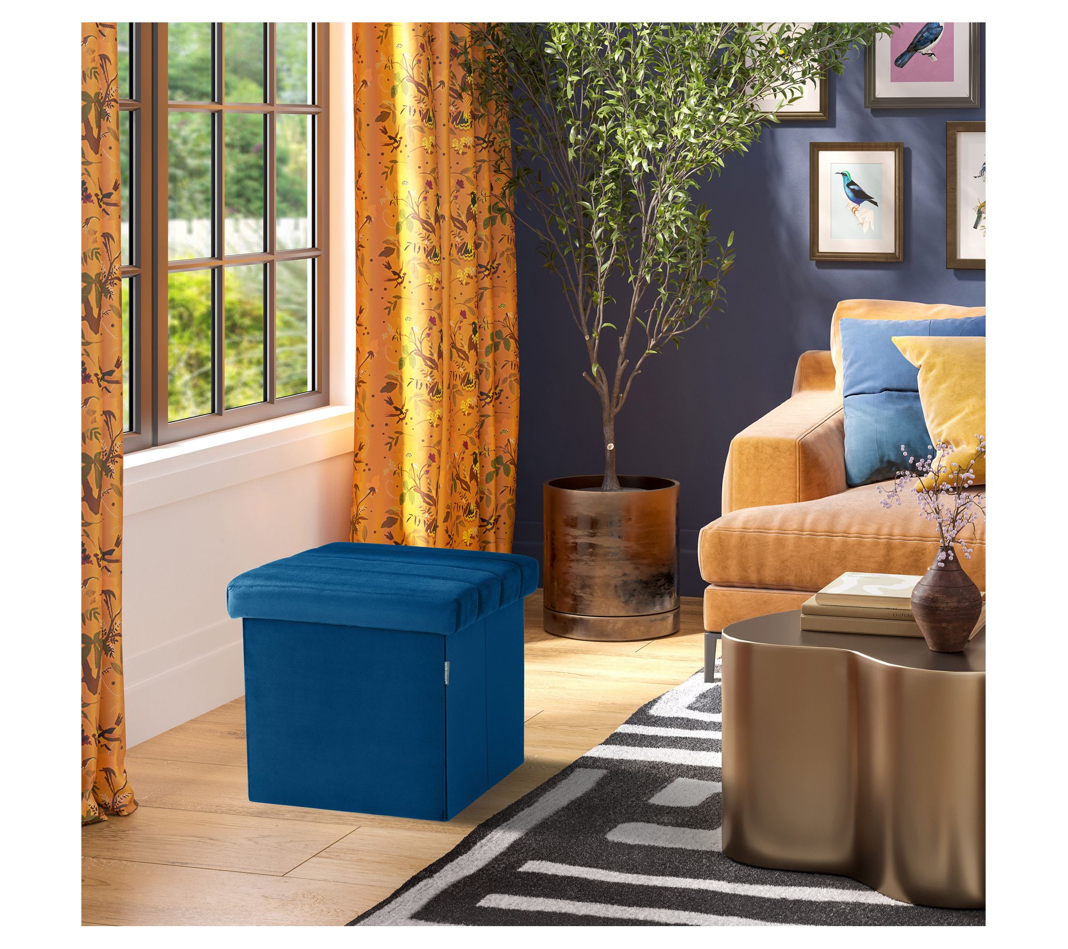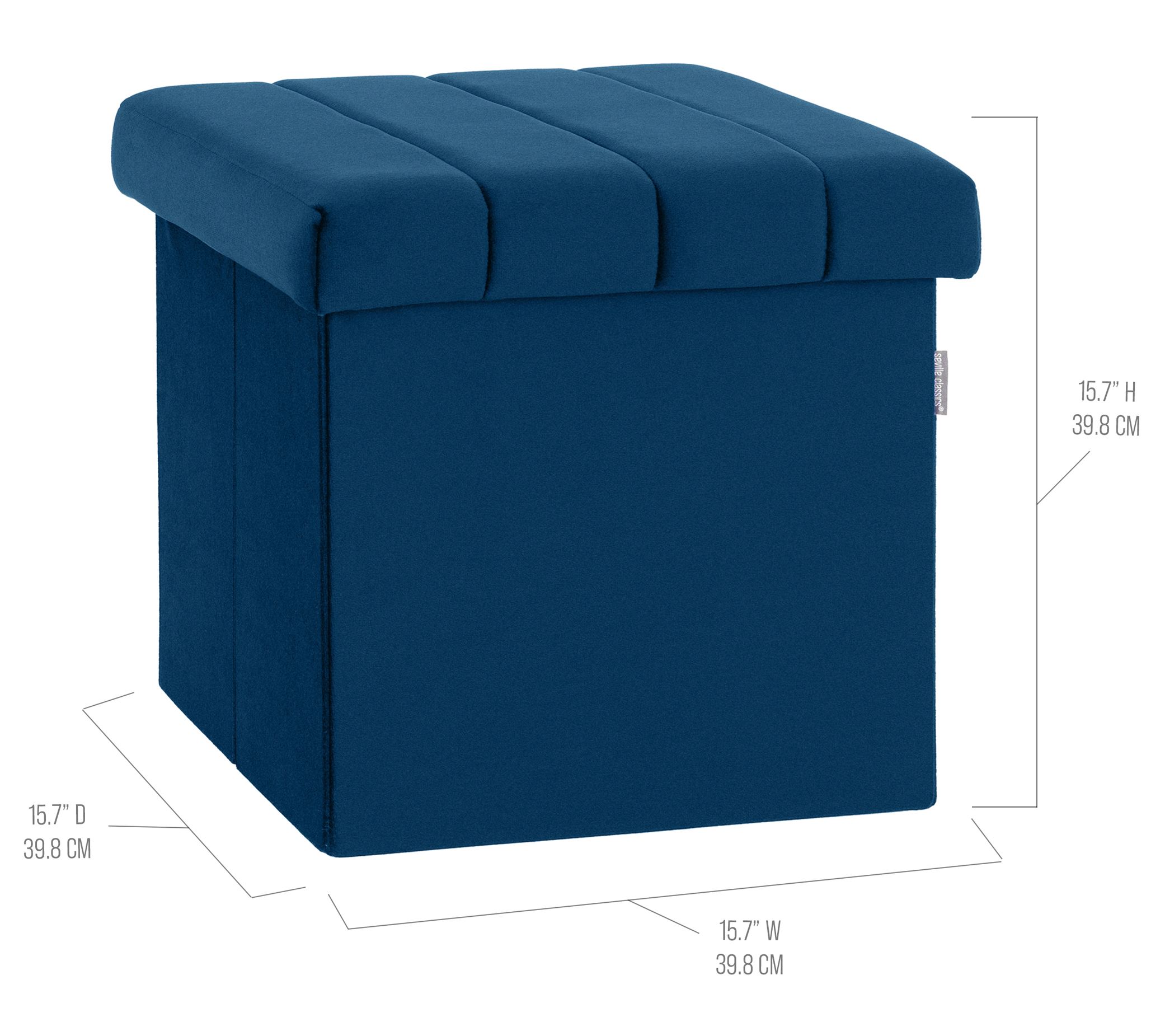 Seville Classics Blue Velvet Storage Ottoman, 15.7" W X 15.7"H