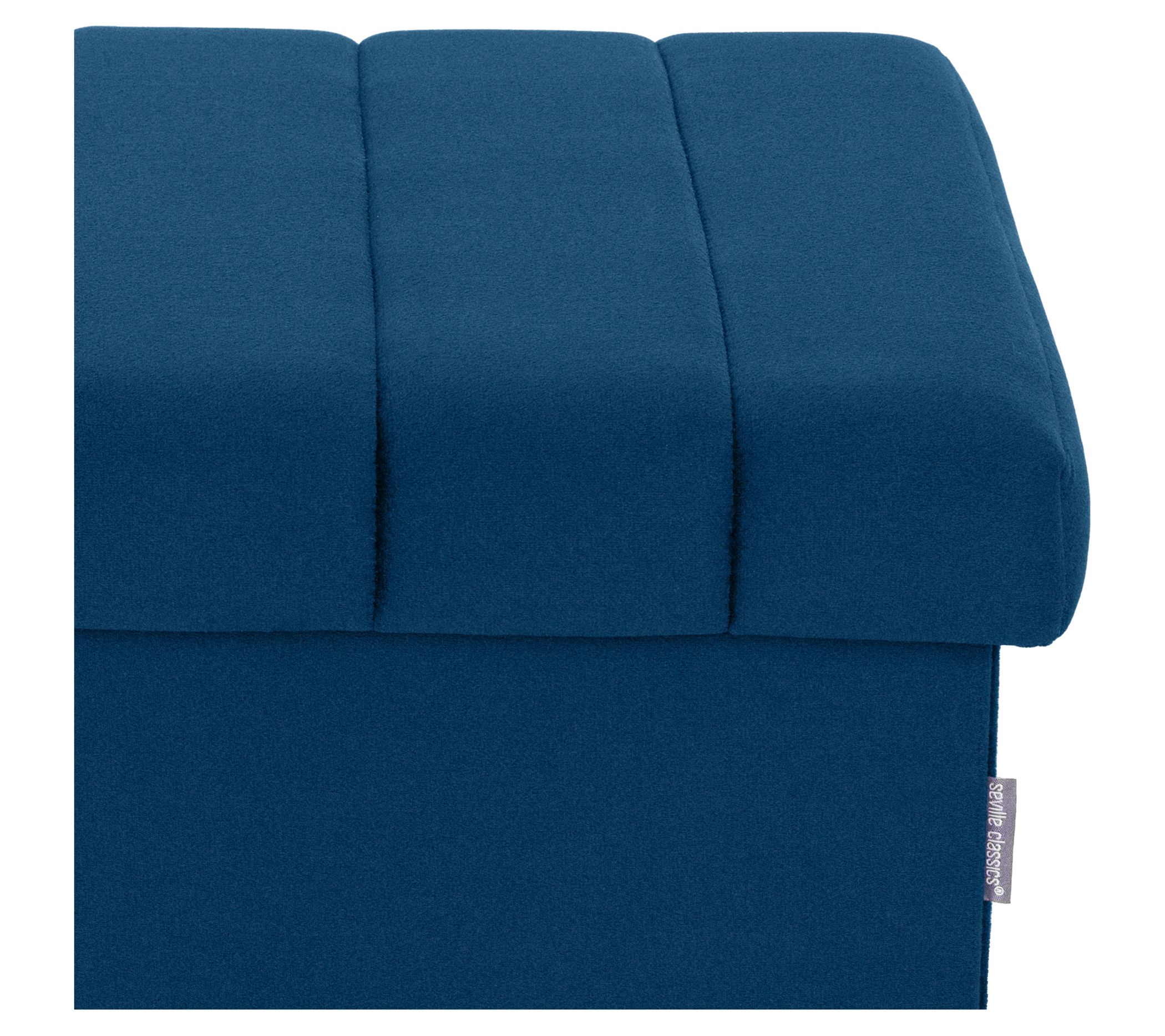 Enhance your living space with the Seville Classics blue velvet storage ottoman. This stylish piece features a soft, foam-cushioned top, perfect for comfortable seating or as a footrest. The hidden storage compartment is ideal for organizing blankets, magazines, and more, making it a versatile addition to any room. From Seville Classics.