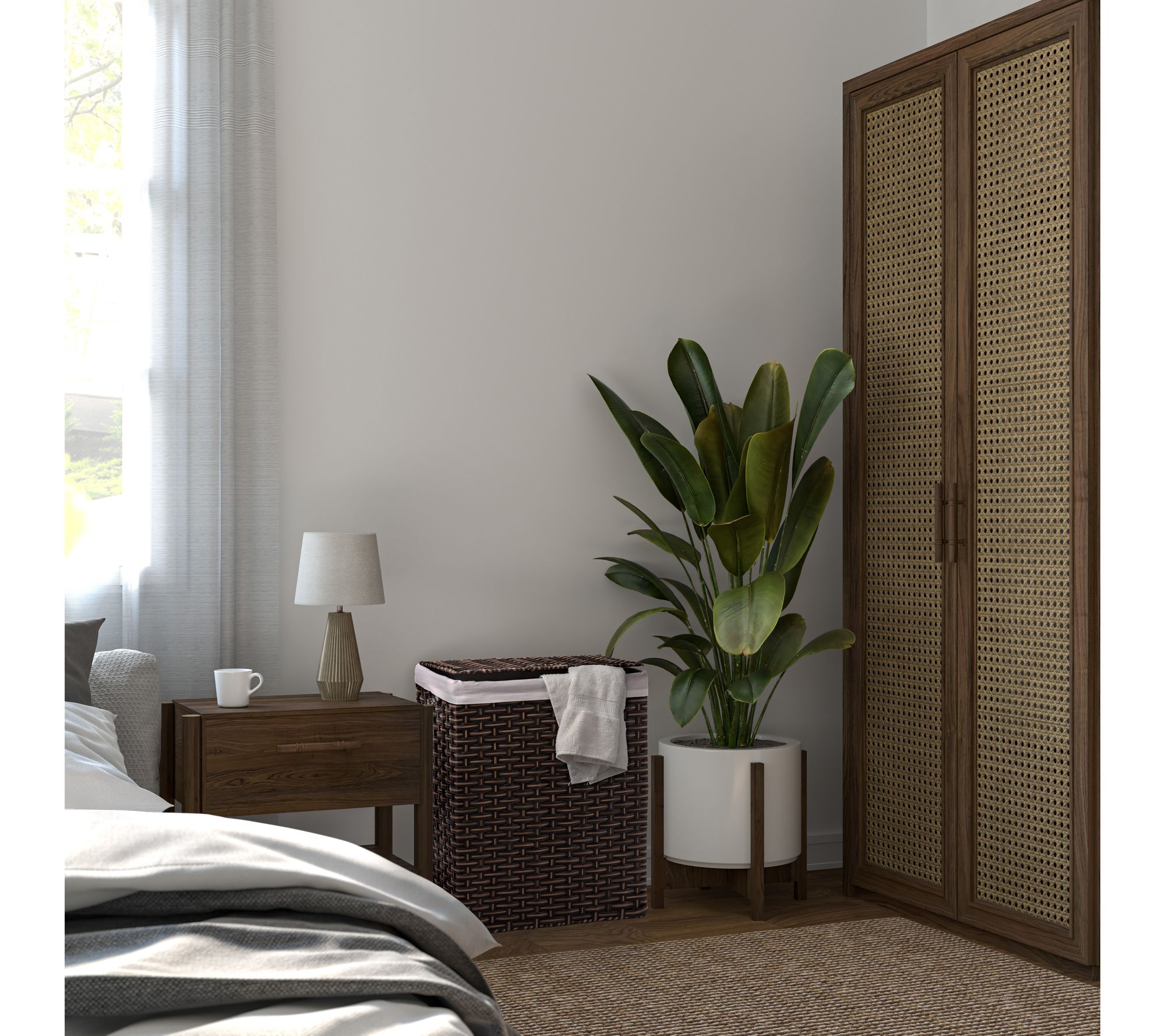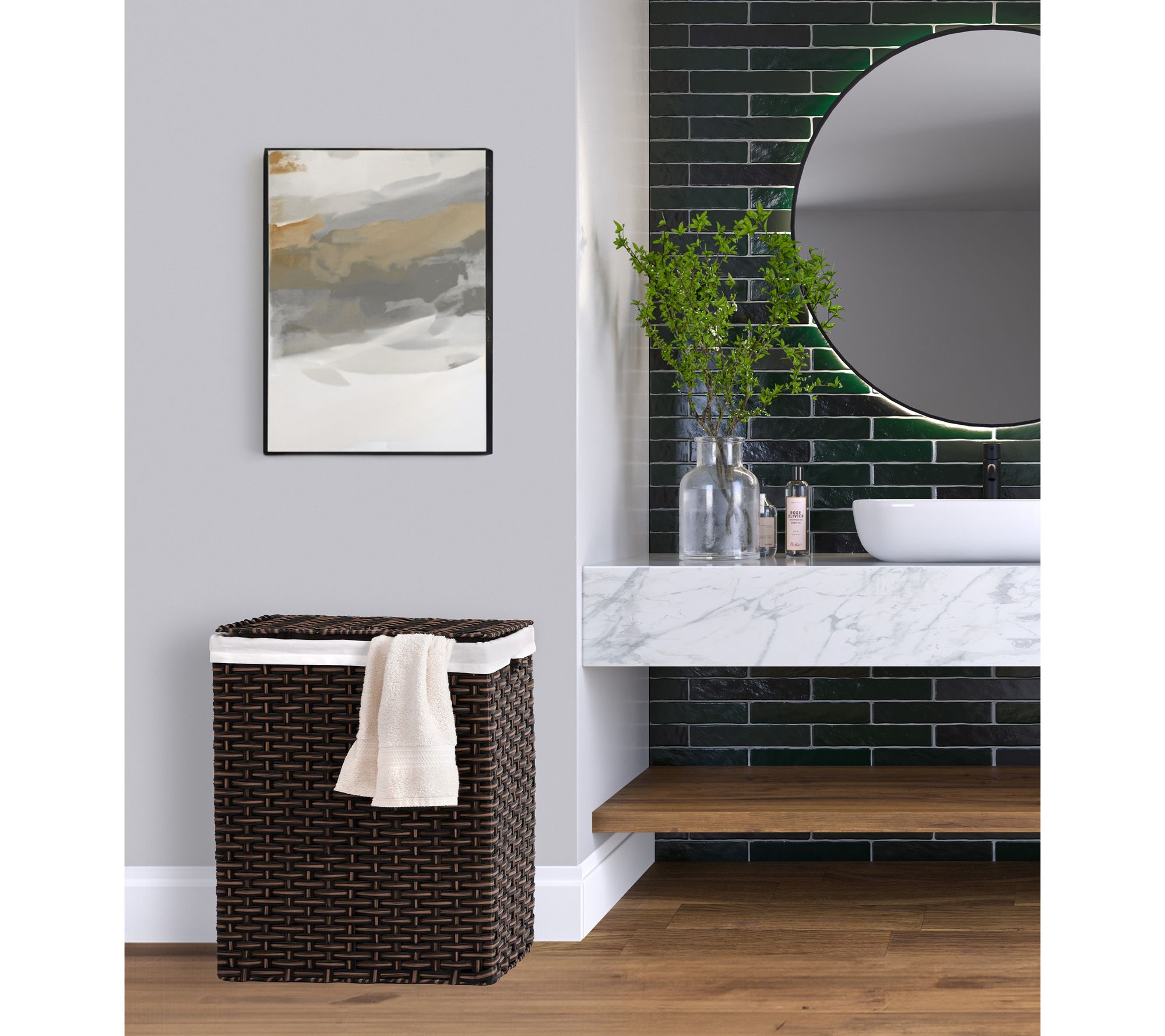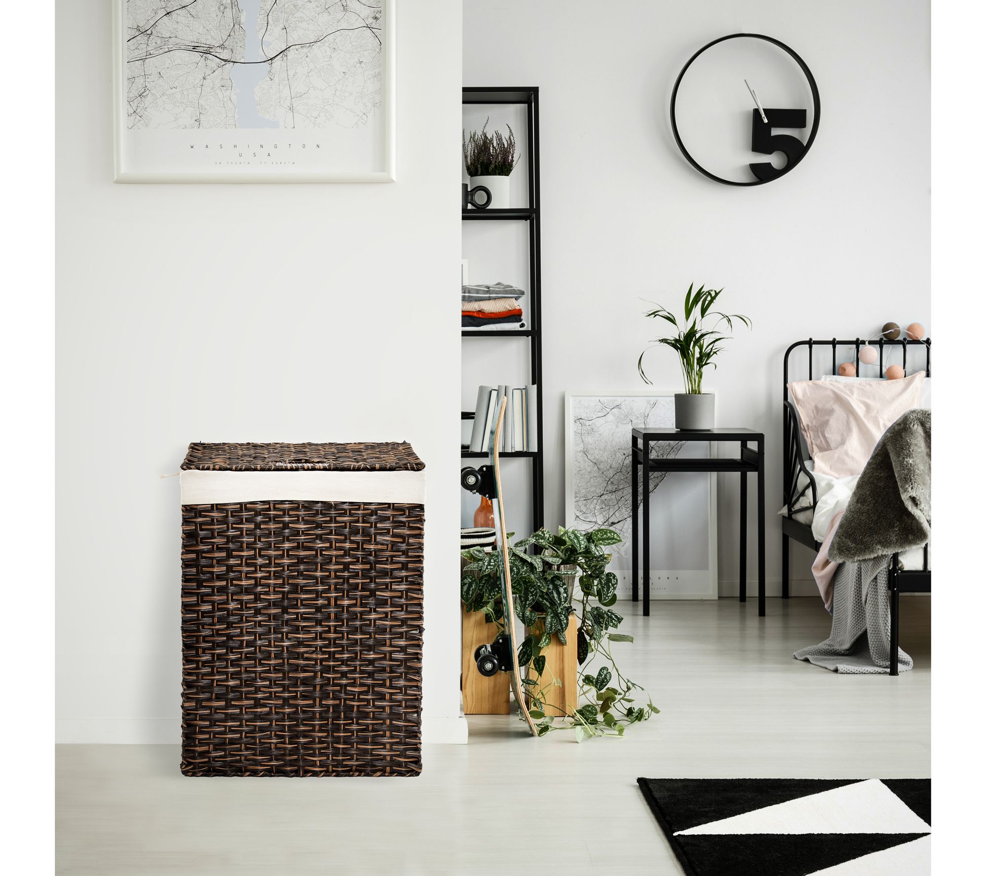 The Seville Classics lidded laundry hamper offers a stylish and practical solution for your laundry storage needs. The woven design, removable machine-washable bag liner, and built-in carrying handles make it both functional and fashionable, seamlessly blending with any decor. From Seville Classics.