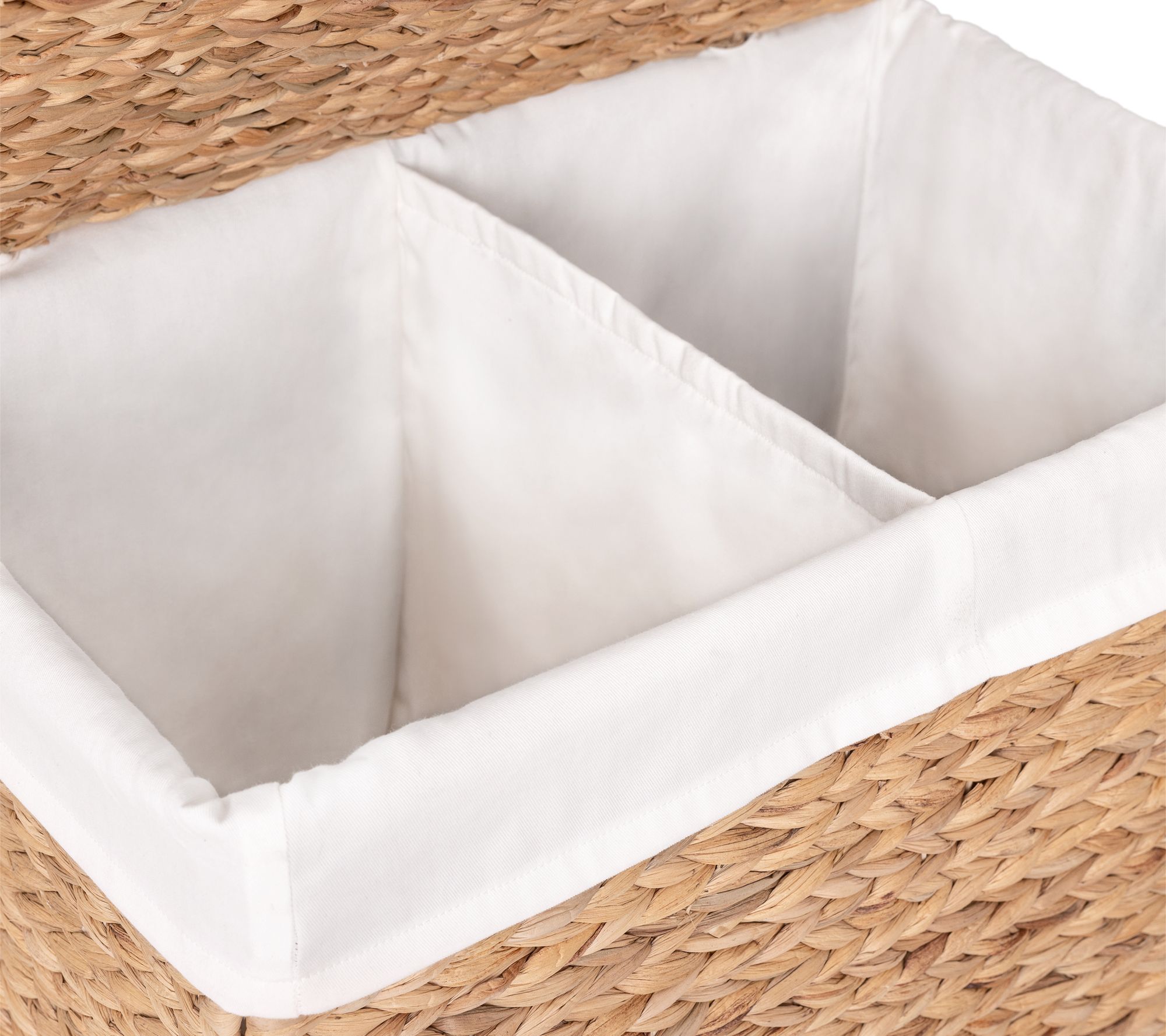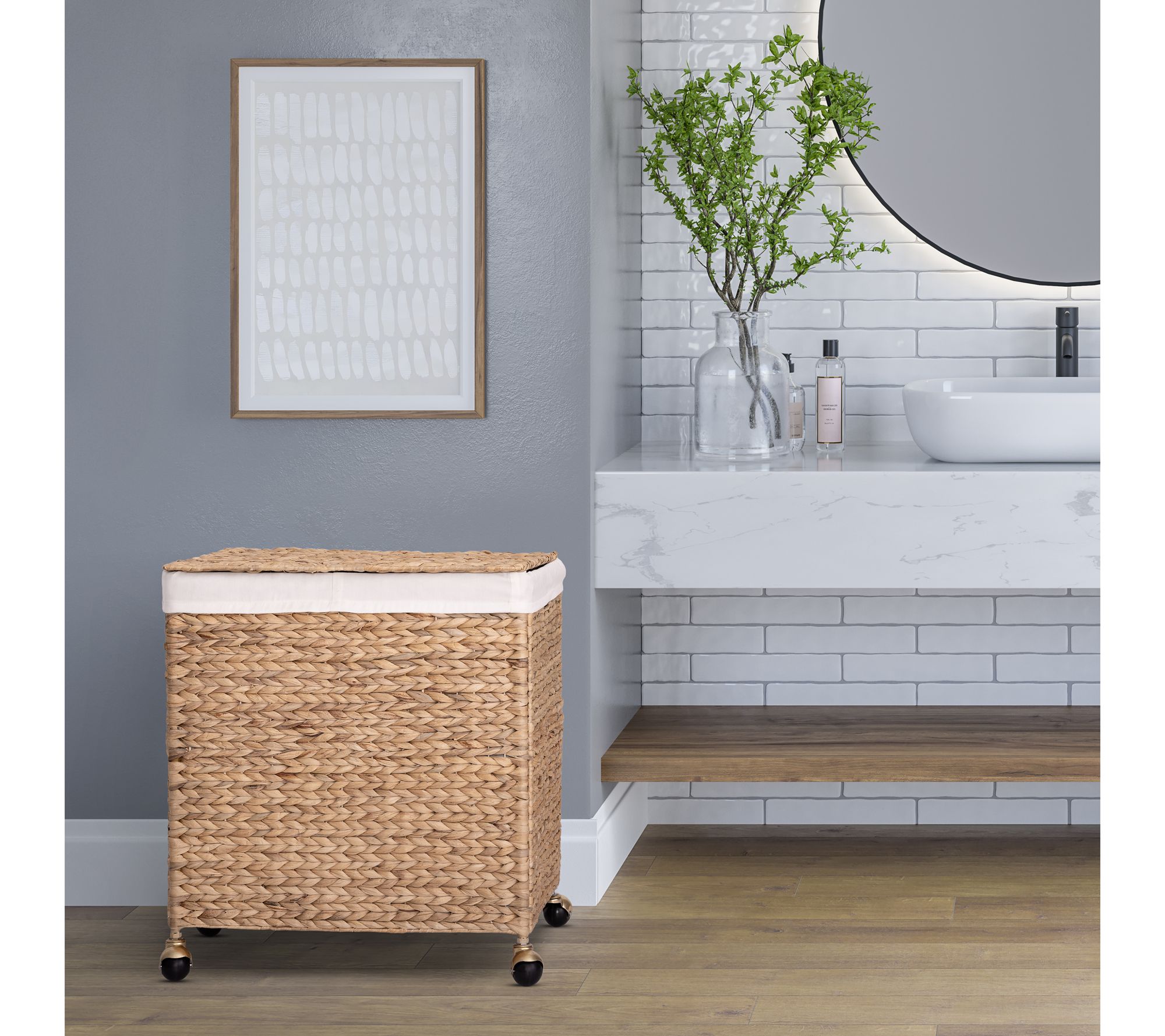 Elevate your laundry routine with the Seville Classics water hyacinth double laundry hamper. This stylish and functional hamper features an eye-catching design over a sturdy metal frame, and sphere casters for effortless mobility. With two compartments and a machine-washable liner, sorting and cleaning laundry has never been easier. From Seville Classics.