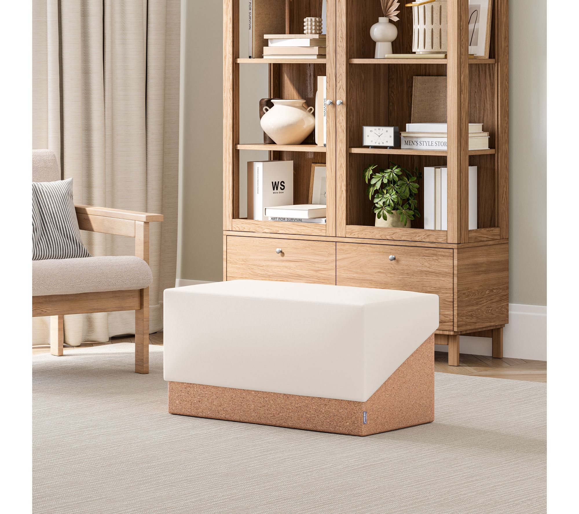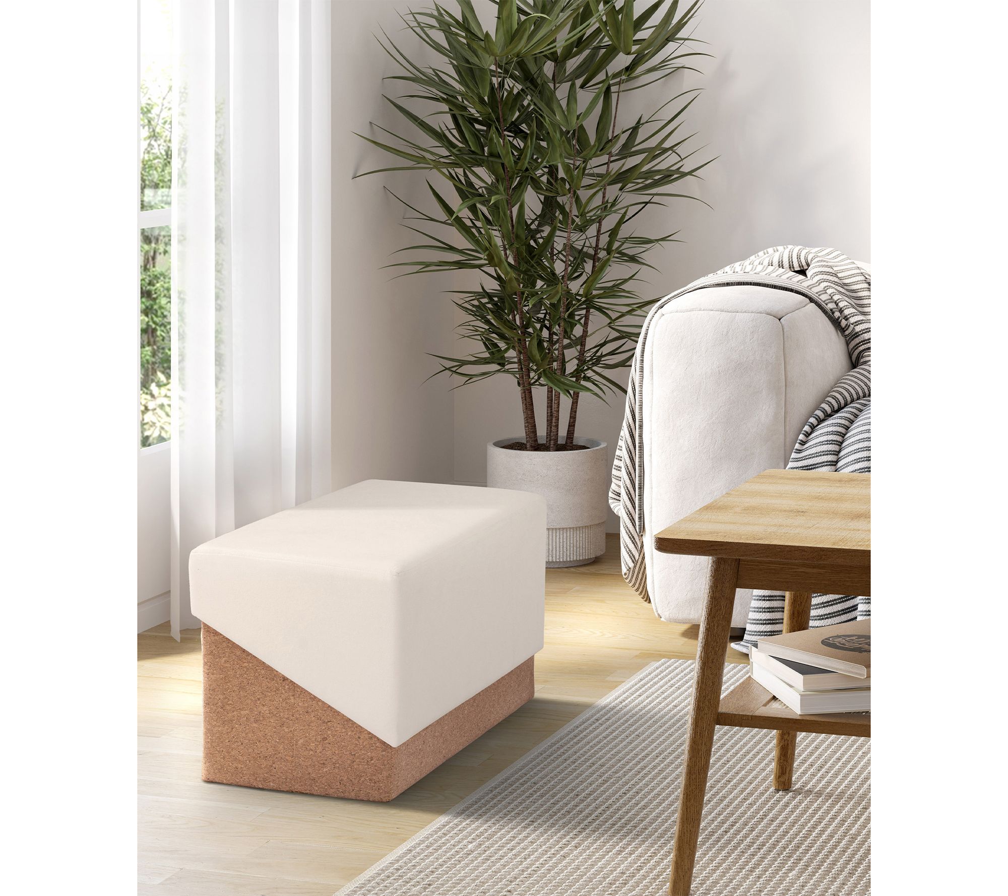 Brighten your space with the Seville Vineyard Collection cork bench trunk storage ottoman. This modern two-toned piece features a premium cushion top and a sustainable cork base, offering plush seating or a useful footrest. The removable lid reveals a hidden storage compartment, perfect for organizing blankets, pillows, and more. From Seville Classics.
