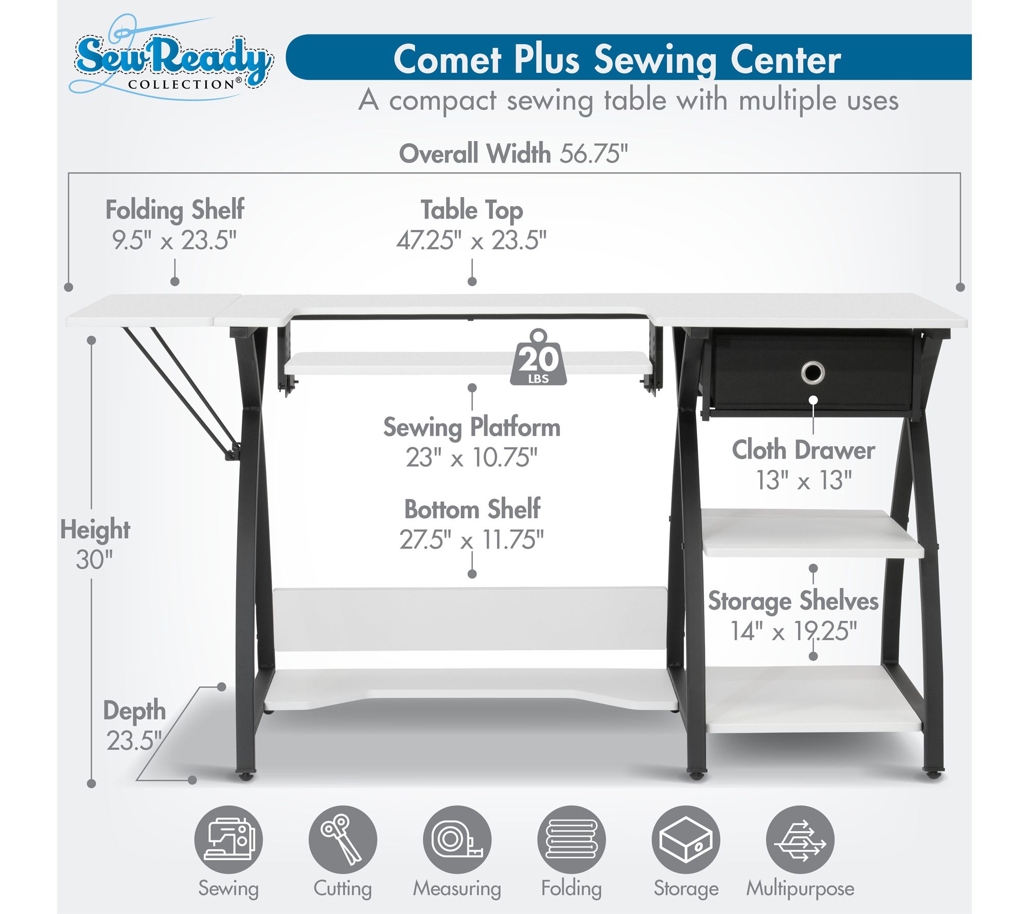 • Includes sewing table