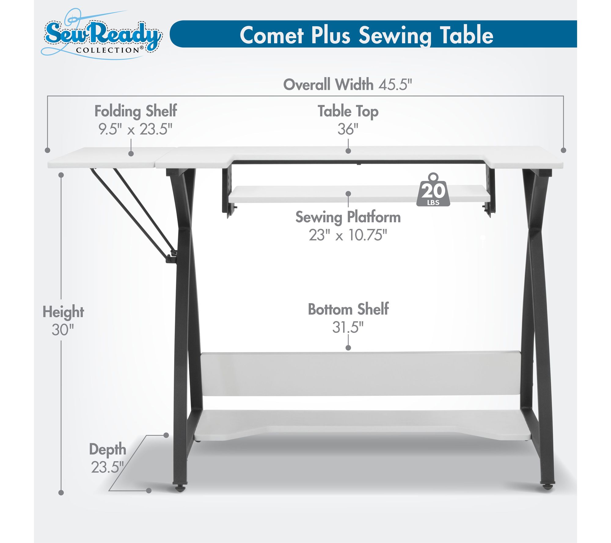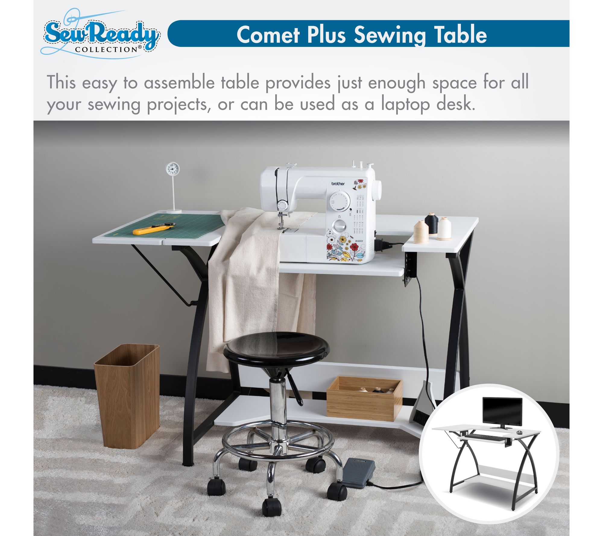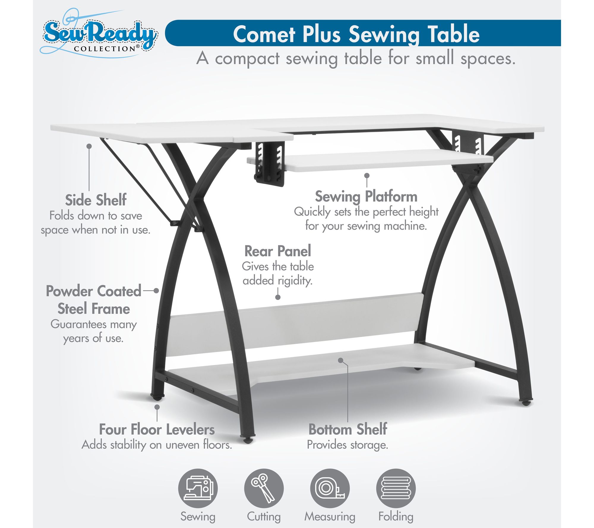 Sew Ready Comet Plus Sewing/Office Table with Fold-Down Top