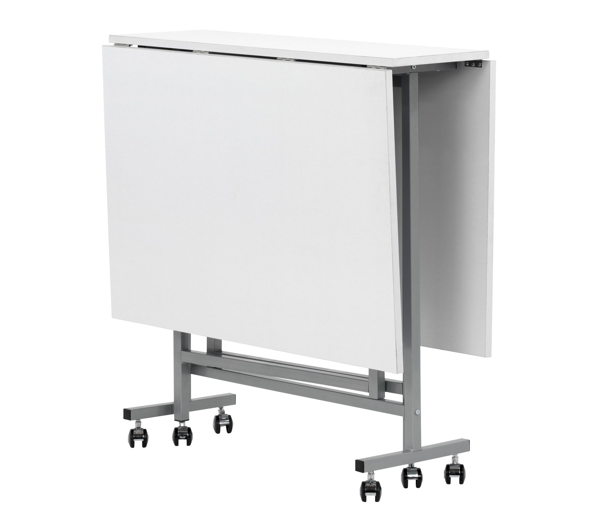 • Features two large drop-leaf panels for extra workspace; folds to 12.25"W for easy storage; six wheels (four locking) for mobility