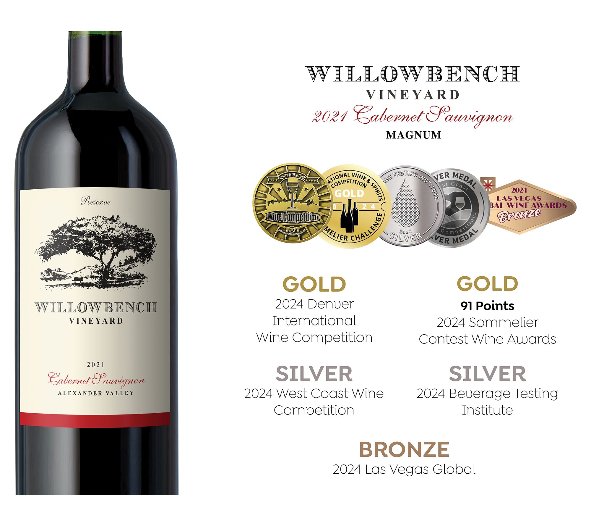 • Includes two 1.5-liter magnums of Willow Bench Cabernet Sauvignon