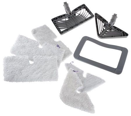 Includes one triangular quick-release mop head, one rectangular quick-release mop head, two triangular pads, three rectangular pads, carpet glider, and 8-oz filling flask