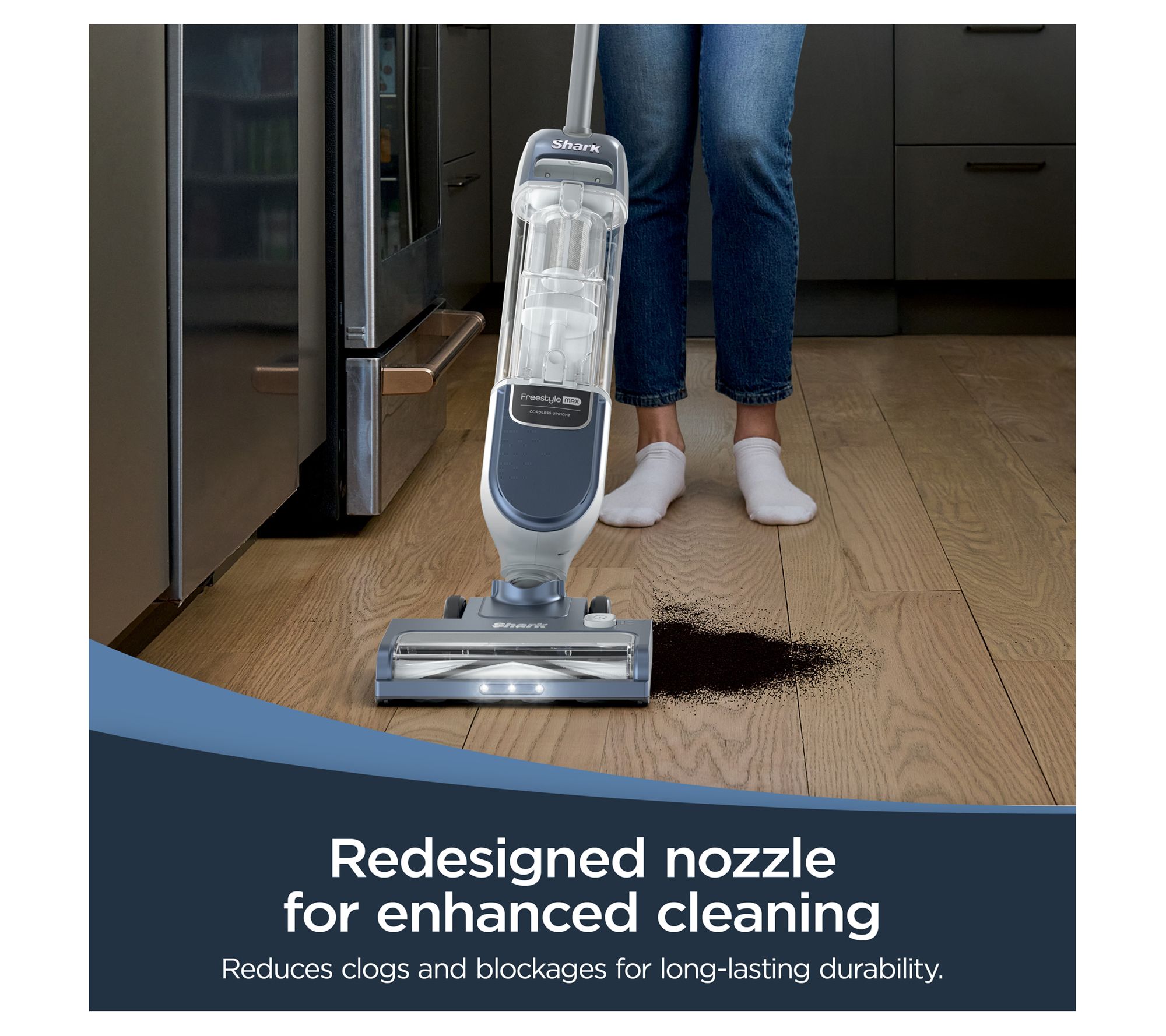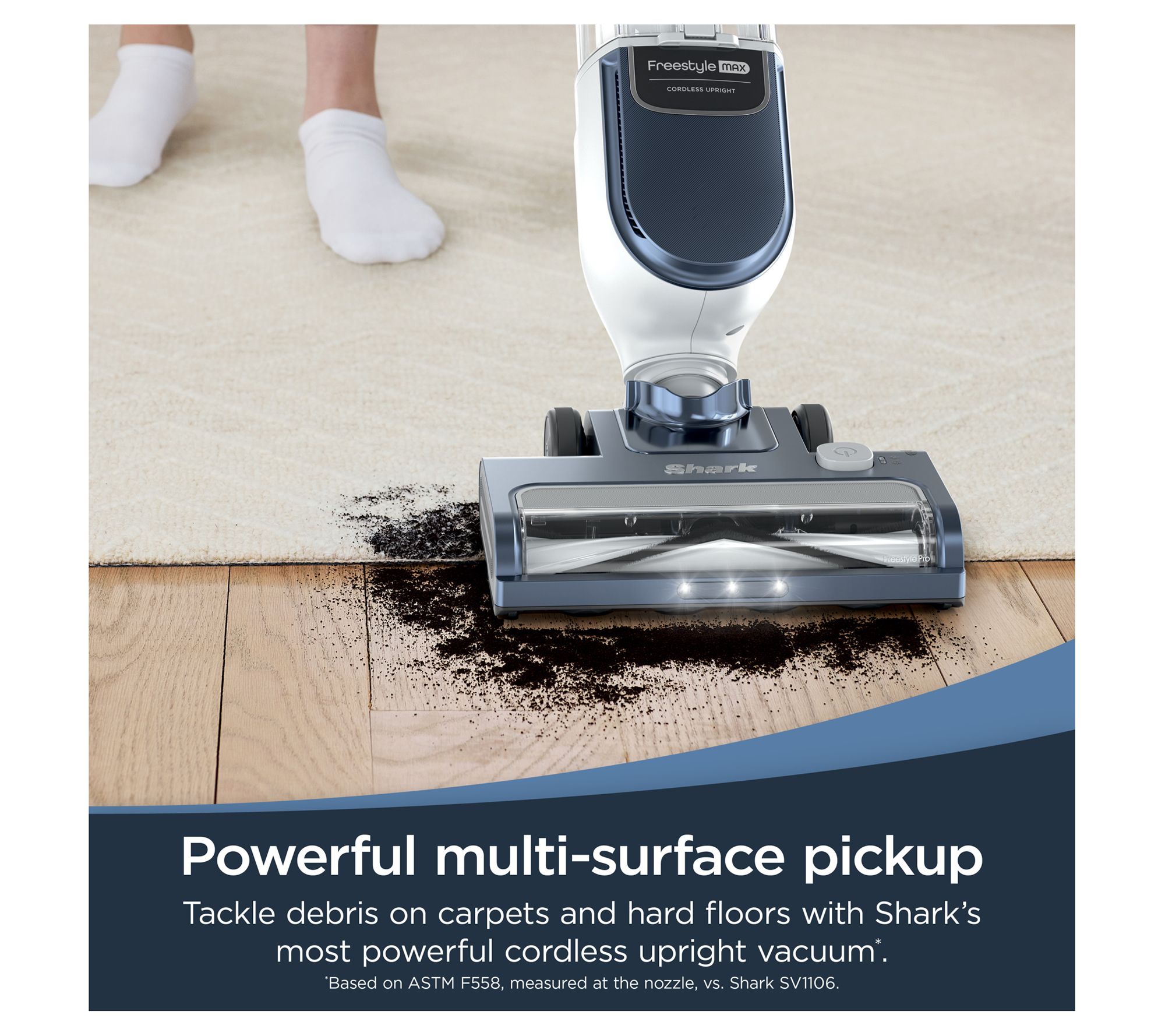 A quick sweep before guests arrive or a deep clean in hard-to-reach corners feels effortless with the Shark Freestyle Max cordless upright vacuum. Enjoy the lightweight feel and freedom of no cords as LED headlights reveal hidden dust while two brushroll speeds handle both carpets and bare floors. Cleaning sessions last longer with the large, easy-empty dust cup and fast-charging design. From Shark.
