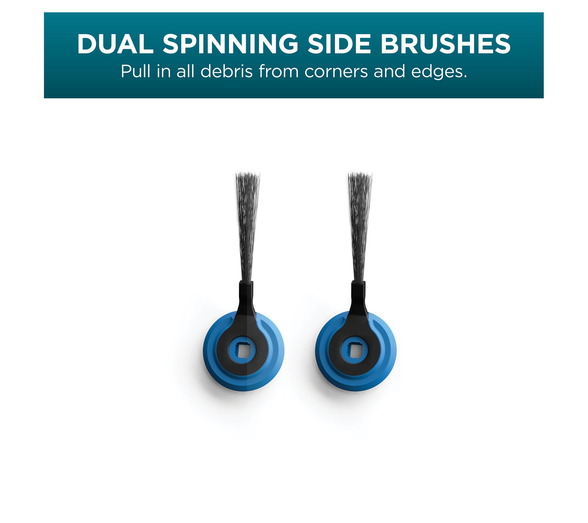 Dual spinning side brushes pull in debris from corners and edges