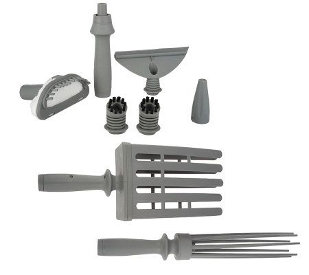 Accessories galore. With four wide sides, the wedge tool is perfect for covering large areas like baseboards and broad surfaces in your kitchen and bathroom. To reach into small crevices like window sills, vents, or door jams, use the cylinder tool. Soap scum got you down? Clean it up with the shower door squeegee for a streak-free shine. Tackle built-up grime with the scrubbing brushes. And if you need to steam wrinkles out of clothing, simply attach the garment steamer diffuser, brush, and bonnet and the unit is transformed into a workhorse for your wardrobe. You can also use it to freshen up drapes, furniture, and other fabrics.