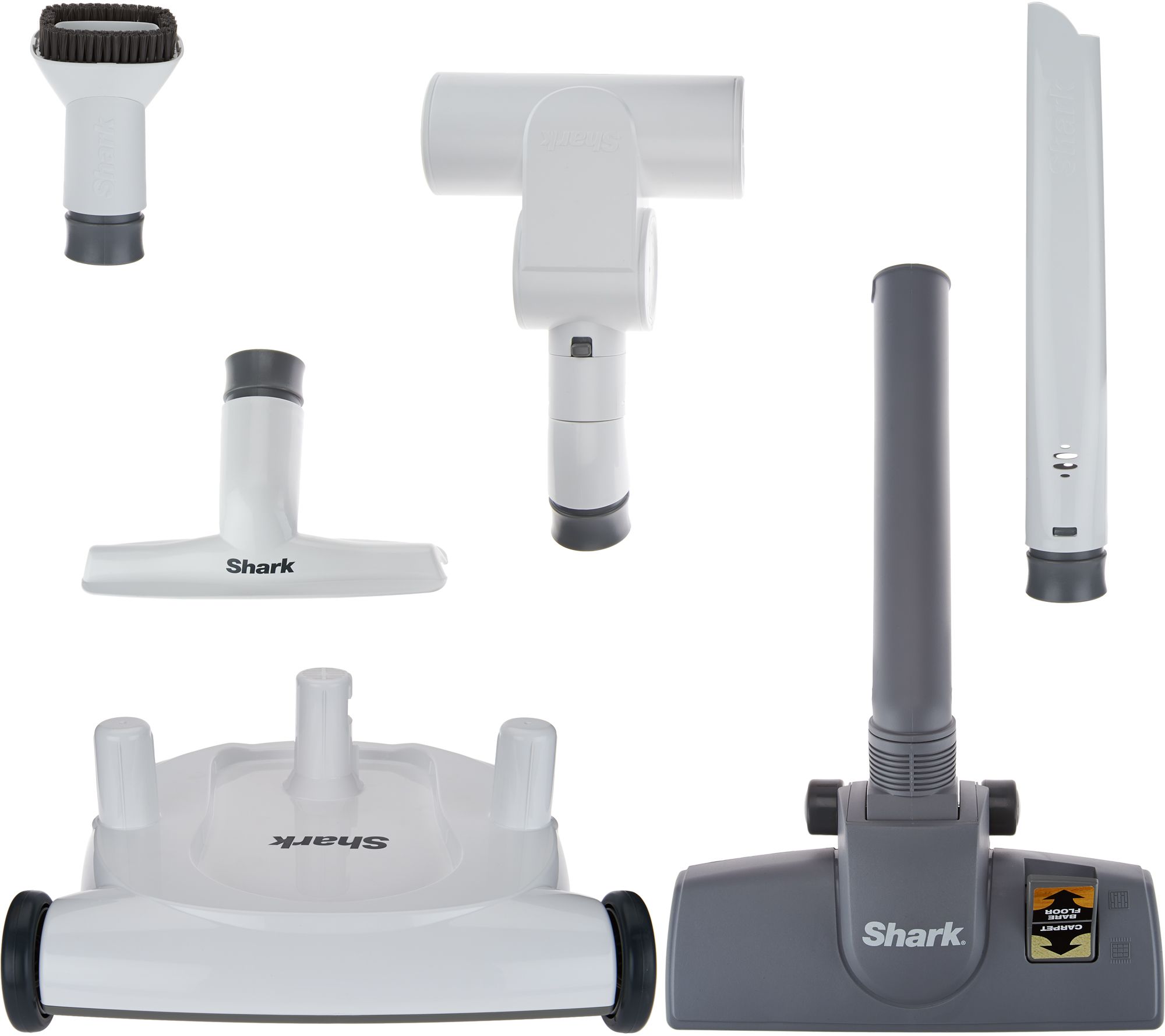 Includes Shark Rotator 3-in-1 upright vacuum, 12" crevice tool, Pet Power brush, straight section floor nozzle, dusting brush, wide upholstery tool, and canister caddy