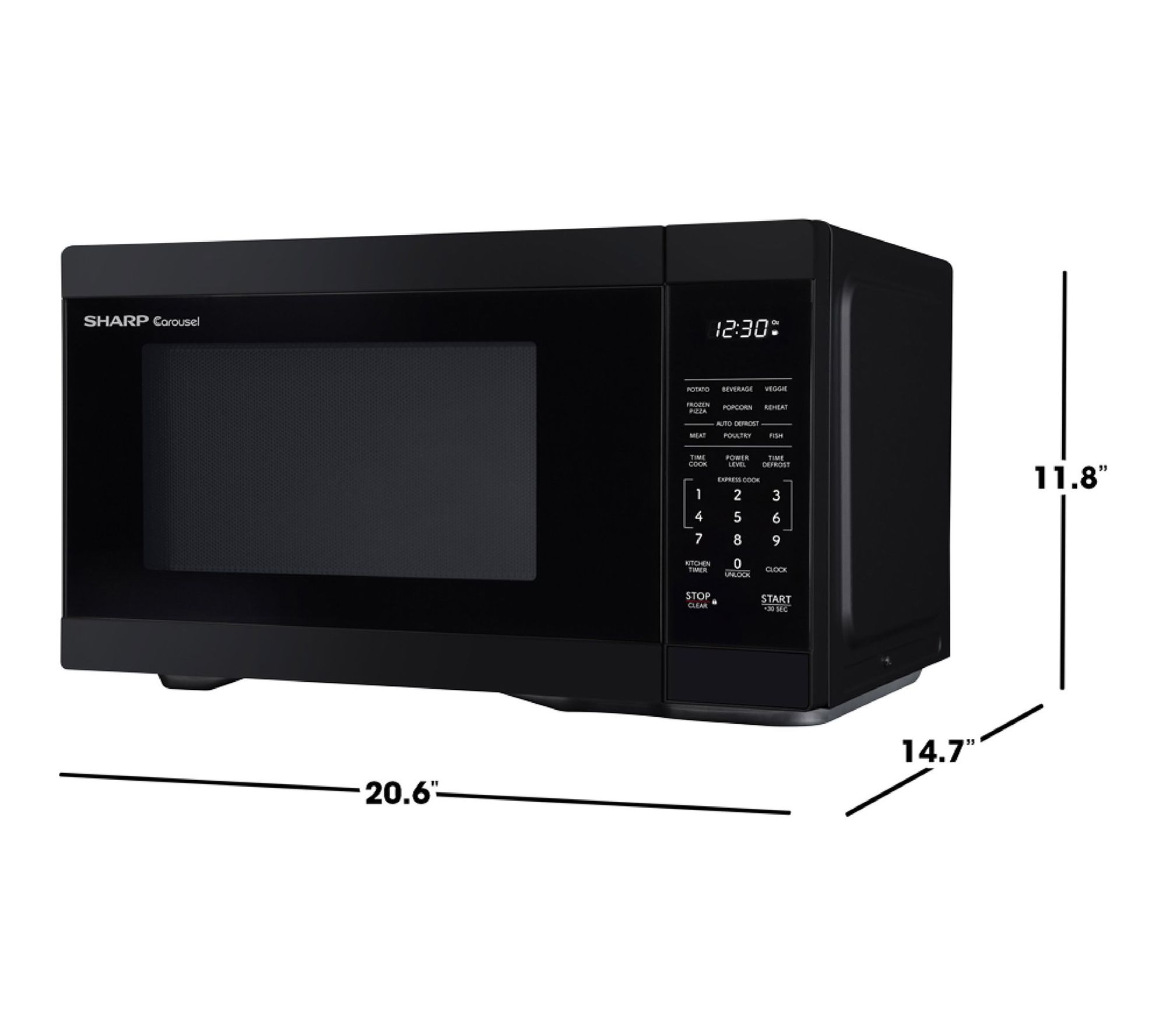 • 1000W cooking power; convenient +30 key for instant start and adding time; Express Cook for single-touch cooking up to 6 minutes; preset buttons for popular foods and beverages; auto defrost for quick, accurate thawing; premium white LED display; 12.4 in. dishwasher-safe glass Carousel turntable; enable silent mode to turn keypad and end-of-cooking sound off