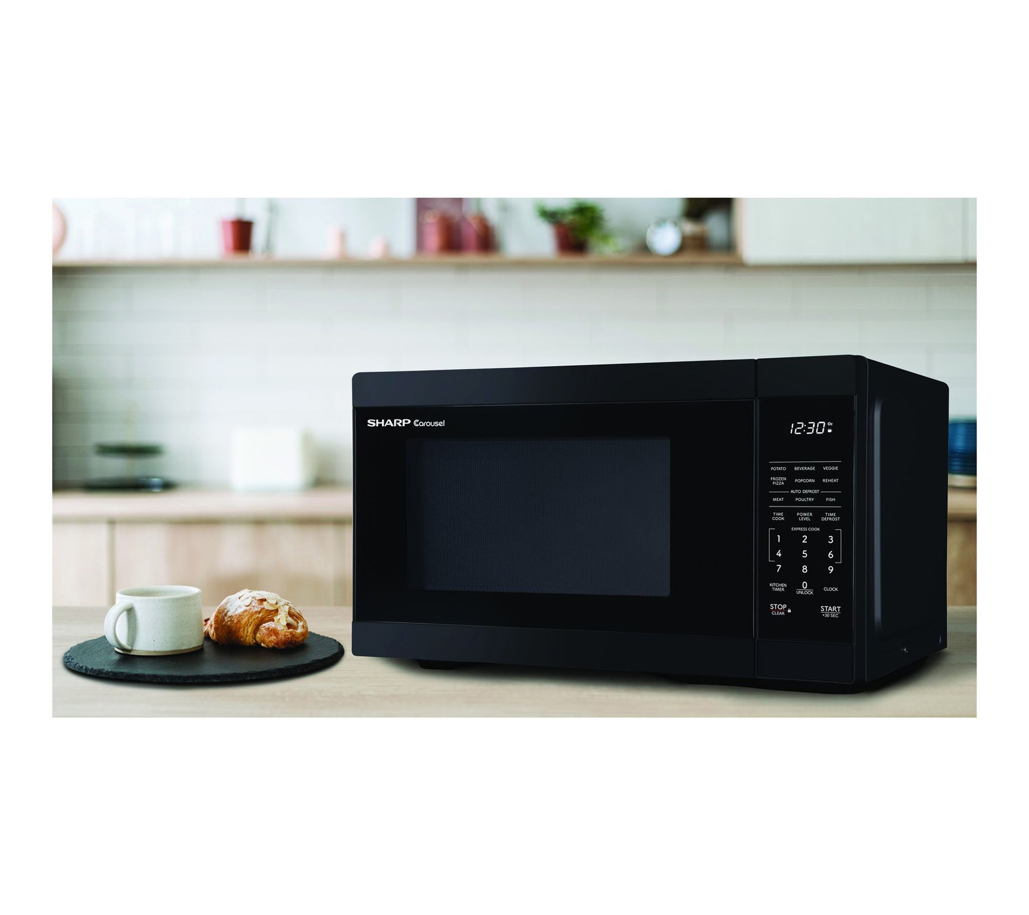 From quick morning breakfasts to late-night snacks, this countertop microwave oven brings convenient cooking to your fingertips, thanks to one-touch presets, Express Cook, and easy defrost options. Its stylish gray interior, bright LED display, and easy-to-clean dishwasher-safe glass turntable let you spend less time cleaning up and more time savoring your meals. From Sharp.