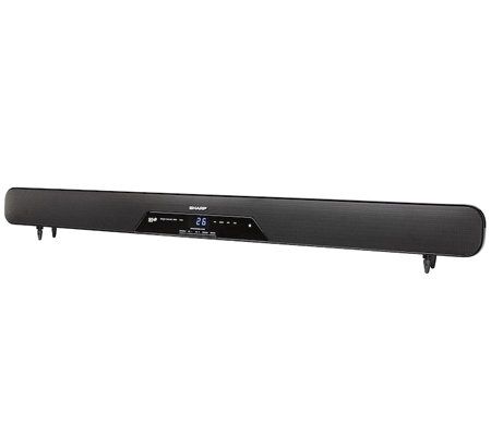 Crank it up. With 2.1-channel surround sound, plus a built-in subwoofer and SRS, this sleek, simple sound bar will have you feeling like you're in a room full of booming speakers. The compact, one-speaker unit is equipped with SRS WOW HD, which offers four modes so you experience the optimal audio setting no matter what you're watching or listening to. From Sharp.