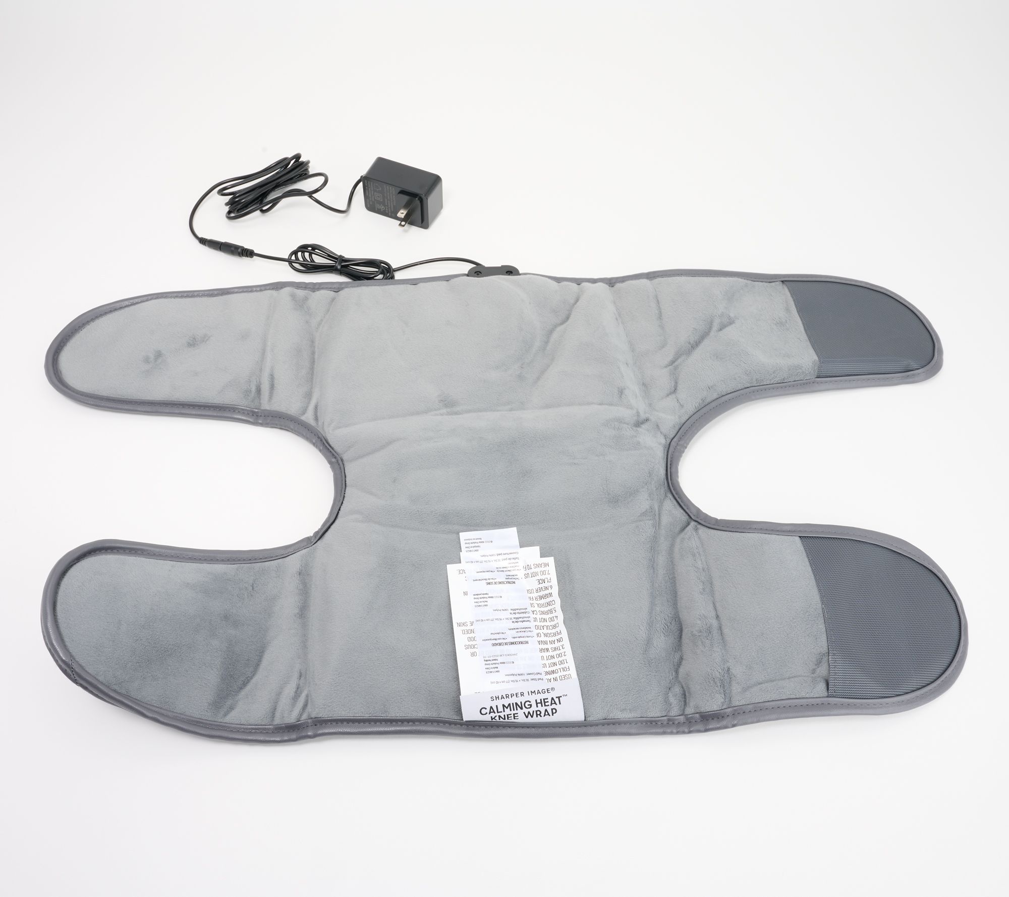 Enjoy soothing relief after a long day on your feet (or an intense workout) with this plush heated and massaging leg wrap, providing temporary relief of minor muscle stiffness. From Sharper Image.